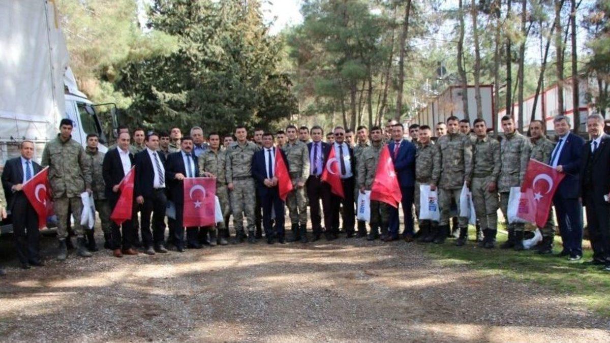 Türkiye Damızlık Sığır Yetiştiricileri Merkez Birliği (DSYMB) Başkanı Kamil Özcan, Afrin Zeytindalı harekâtındaki Mehmetçiklere destek olmak üzere Kilis’e giderek hazırlanan malzemeleri teslim etti.Çorum, Samsun ve Manisa Damızlık Sığır Yetiştiricileri Birliklerinin hazırladıkları giyim ve gıda malzemeleri Türkiye Damızlık Sığır Yetiştiricileri Merkez Birliği Başkanı Kamil Özcan tarafından Kilis’te bulunan 3. Hudut Tabur Komutanlığına teslim edildi.Merkez Birliği Başkanı Kamil Özcan, İl Birliklerinin de sağladığı katkılarla hazırlanan malzemeleri teslim ederek Mehmetçiklerle bir araya geldi. Özcan, “Zeytin Dalı Harekatı kapsamında Afrin’de bulunan şanlı ordumuzun kahraman Mehmetçiklerine moral ve destek vermek için sınır bölgesindeydik. Yönetim ve Denetleme Kurulumuzun yanı sıra Merkez Birliği koordinasyonu ile Çorum, Samsun ve Manisa Damızlık Sığır Yetiştiricileri Birliklerimizin sağladığı katkılarla hazırlanan gıda ve giyim malzemelerini 19 Şubat 2018 tarihinde Kilis’te yerleşik bulunan 3. Hudut Tabur Komutanlığına teslim ettik. Gazi olan Mehmetçiklerimize acil şifa, şehit düşen Mehmetçiklerimize Allahtan rahmet, yakınlarına, şanlı Türk Silahlı Kuvvetlerimize ve yüce milletimize baş sağlığı dileriz. Allah, kahraman ordumuzu muzaffer eylesin” dedi.