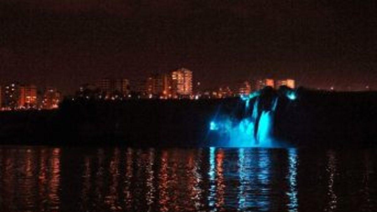 Antalya Büyükşehir Belediyesi, Düden Çayı’nın denize döküldüğü noktadaki falezleri ışıklandırdı.
