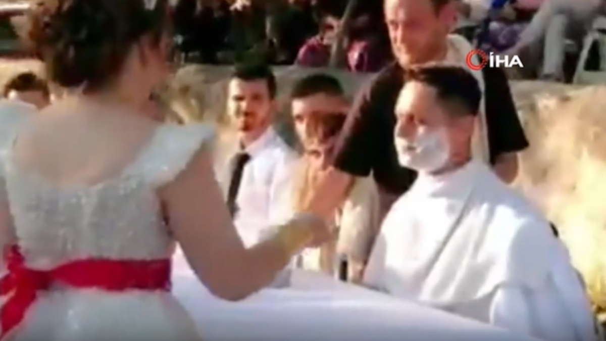 Gönen ilçesine bağlı Havutça Kırsal Mahallesi'nde asırlardır süregelen sıra dışı bir düğün geleneği ilk defa görenleri şaşkına çeviriyor. Bölgede uygulanan "damat tıraşı" adlı gelenekte, damat ve sağdıçları bir masaya oturtuluyor.