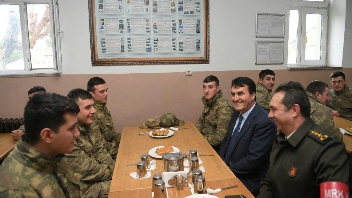 Osmangazi Belediye Başkanı Mustafa Dündar, Kara Kuvvetleri EDOK Okullar Komutanlığı Hürriyet Kışlası’nı ziyaret etti. Askerlere tatlı ikram eden Dündar, “Allah’ın izniyle terör bataklığını kurutacağız” dedi.Kara Kuvvetleri EDOK Okullar Komutanlığı Hürriyet Kışlası Komutanı Albay Gürkan Çankaya’yı makamında ziyaret eden Başkan Dündar, daha sonra kışla yemekhanesini ziyaret ederek, vatanî görevini yerine getiren askerleri selamladı. “Asker yaşadığı yeri bilmezse orada görev yapmamıştır” diyen Başkan Dündar, Mehmetçiklere, Bursa ve Osmangazi ilçesi hakkında bilgiler verdi. Askerlere, vatanî vazifelerini çok güzel bir şekilde yerine getirdiklerini ifade eden Dündar, “Ülkemizin her noktası ayrı güzel. Çok şükür iyi şartlarda yaşıyoruz. Tabiî bu da bizim ülkemizin zenginliği ile oluyor. Belki petrol ve doğalgaz gibi doğal kaynaklarımız yok ama insanımızın üretkenliği var. Daha önceleri dış güçler, insanımızın alın terini ve üretkenliğini sömürüyordu. Emperyalist güçler çevirdikleri oyunlarla ülkemizi her zaman kendilerine borçlu halde tutuyorlardı. Bu ülkenin büyümesini ve bu milletin yeniden tarih sahnesinde yer almasını istemeyen emperyalist güçler bizi hedef aldı. 15 Temmuz hain darbe girişimi, Suriye ve Irak’ta yaşanan olaylar, doğrudan ve dolaylı olarak ülkemize yapılan saldırılardır” dedi.Dündar, “Güçlü bir Türkiye işlerine gelmiyor. Bizim şuanda Afrin’de gerçekleştirdiğimiz Zeytin Dalı harekatı, yeniden tarih sahnesinde yer almamızın ilk adımıdır Allah’ın izni ile askerimiz ve milletimiz muzaffer olacaktır. Bu millet Kurtuluş Savaşı’nı yokluklar içerisinde kazandı. Şimdi ise kendi ürettiğimiz silahlarla savaşıyoruz. Artık orada biz de varız diyoruz. Allah’ın izniyle Afrin’de bize karşı cephe alan herkesi durduracağız. O bölgedeki terör bataklığını kurutacağız” diye konuştu.Başkan Dündar, ziyarette askerlere tatlı ikram ederek, görevlerinde başarılar diledi.