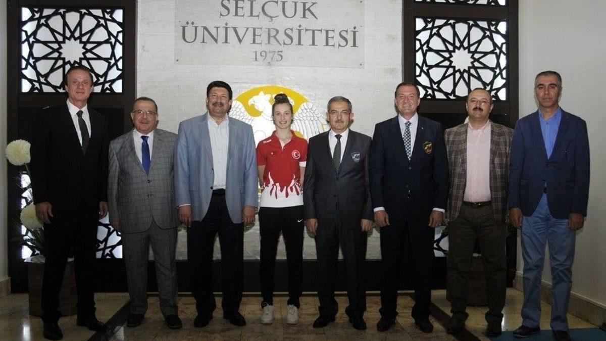 Güney Kore’de düzenlenen Dünya Tekvando Şampiyonası’nda kadınlar 53 kiloda altın madalya kazanan Zeliha Ağrıs ve beraberindeki heyet Selçuk Üniversitesi Rektörü Prof. Dr. Mustafa Şahin’i ziyaret etti.Rektörlük binasında gerçekleşen ziyarette, desteklerinden dolayı Rektör Mustafa Şahin’e teşekkür eden Zeliha Ağrıs,“Desteklerinizden dolayı Selçuk Üniversitesi Rektörümüz Prof. Dr. Mustafa Şahin olmak üzere yönetime çok teşekkür ederim. Böyle bir başarı elde ederek hem ülkemizi ve üniversitemizi gururlandırdığım için mutluyum. Bundan sonraki hedefim tekrar dünya şampiyonu olmak ve olimpiyat şampiyonu olarak Selçuk Üniversitemizi ve ülkemizin adını duyurmaktır” dedi.Spor Bilimleri Fakültesi Öğretim görevlisi ve Türkiye Taekwondo Milli Takımlar Teknik Direktörü Ali Şahin ise, “Hem ülkemizi hem Konya’yı ve üniversitemizi temsil etmek bizim için bir onurdur. İnşallah başarılarımız giderek artacak ve hedefimiz olimpiyat şampiyonu olarak hem ülkemizi ve üniversitemizi en iyi şekilde temsil etmektir” diye konuştu.“Selçuk Üniversitesi her alanda başarıya koşuyor”Türkiye Taekwondo Federasyonu Başkanı Doç. Dr. Metin Şahin ise,“ Yıllarca Selçuk Üniversitesi çatısı altında çok büyük hizmetler sağladınız. Olimpiyat ve dünya şampiyonları üniversitemizden çıktı bu başarılar bizim için ve ülkemiz için bir gurur kaynağıdır. Selçuk Üniversitemizin tanıtımı bu başarılar birer fırsattır. Avrupa Federasyonu seçiminde asbaşkan ve başkanvekilliğine tekrar seçildik. Ülkemiz adına ülkemizin temsili açısından tanıtılması önemli görevlerdir. Selçuk Üniversitemiz ve Prof. Dr. Mustafa Şahin hocamızın maddi ve manevi destekleri her zaman arkamızdadır. Hem sporcu hem de hocalarımıza verdikleri desteklerin bu başarıda büyük payı var. Desteklerinden dolayı Selçuk Üniversitesi Rektörümüz Prof. Dr. Mustafa Şahin ve rektör yardımcılarımıza teşekkür ederim” şeklinde konuştu.“Başarı devamlılığı olan bir ekip işidir”Ülkemizin içinde geçtiği sıkıntılı süreçte bu tür başarıların milletimiz ve ülkemiz için bir moral kaynağı olduğunu ifade eden Selçuk Üniversitesi Rektörü Mustafa Şahin de, “Üniversitemizden bir öğrencimizin bu başarıyı elde etmesi bizim için ayrı bir mutluluk vesilesi oldu. Bu başarıda büyük payı Ali Şahin hocamız ve federasyon başkanımız Metin Şahin hocamıza teşekkür ediyorum. Bu devamlılık arz eden bir başarı Saman alevi gibi belli bir dönem başarı elde edipte ondan sonra tamamen ortadan kayıp olan bir süreç değil. Devamlılığı olan bir başarı olimpiyat şampiyonlukları, dünya şampiyonlukları ve arka arkaya gelen başarılar sporcular var. Bu durum bir geleneğinin bir kültürün oturduğunu gösteriyor. Ve Selçuk Üniversitesi olarak biz Türk sporun her zaman yanında ve arkasındayız. Üniversitemizin bütün imkanları ile sporun içinde olacağız. Bu sene 15-16 lisanslı milli sporcumuzu üniversitemize öğrenci olarak aldık. Bu başarıda emek veren hocalarımız olmak üzere Zeliha Ağrıs kızımızı tebrik ediyorum. Başarıların devamını diliyorum” dedi.Konuşmaların ardından Selçuk Üniversitesi Rektörü Prof. Dr. Mustafa Şahin, dünya şampiyonu Zeliha Ağrıs, Türkiye Taekwondo Federasyonu Başkanı Doç. Dr. Metin Şahin, Selçuk Üniversitesi Spor Bilimleri Fakültesi Öğretim görevlisi ve anteratör Ali Şahin’e hediye takdiminde bulundu. Ziyarete, Selçuk Üniversitesi Rektör Yardımcıları Prof. Dr. Ahmet Kağan Karabulut, Prof. Dr. Hüseyin Kara, Prof. Dr. Mehmet Okka, Türkiye Taekwondo Federasyonu Başkanı Doç. Dr. Metin Şahin, Selçuk Üniversitesi Spor Bilimleri Fakültesi Öğretim Görevlisi ve Türkiye Taekwondo Milli Takımlar Teknik Direktörü Ali Şahin ve dünya şampiyonu Zeliha Ağrıs katıldı.