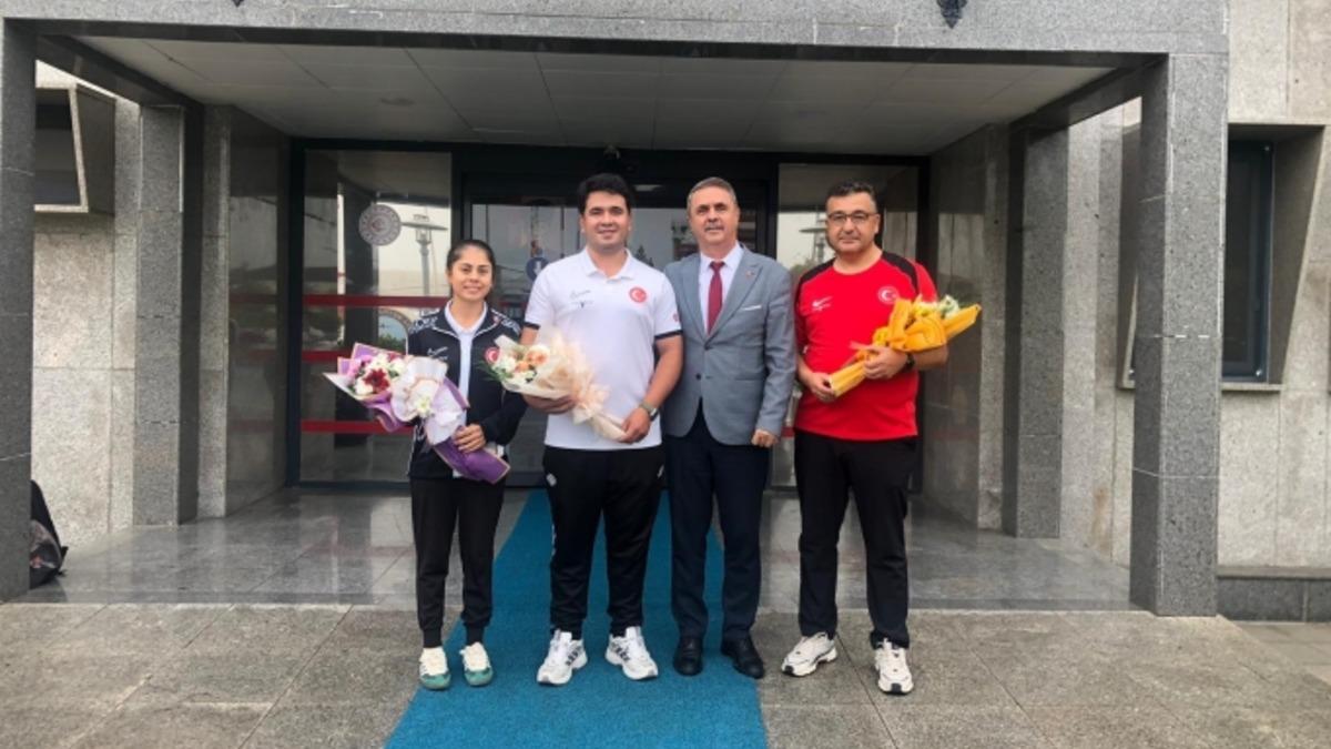 Dünya şampiyonu Emircan Haney çiçeklerle karşılandı