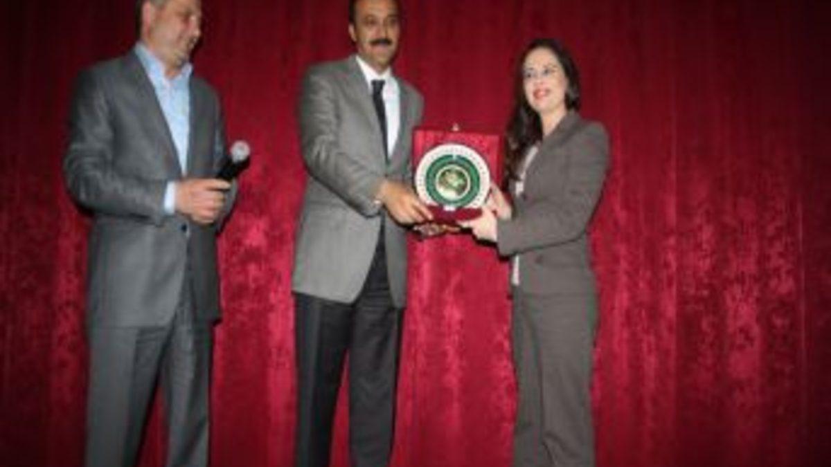 Belediye Başkanı İsmail Bayram da Nilüfer Açıkalın'a katkılarından dolayı plaket verdi.