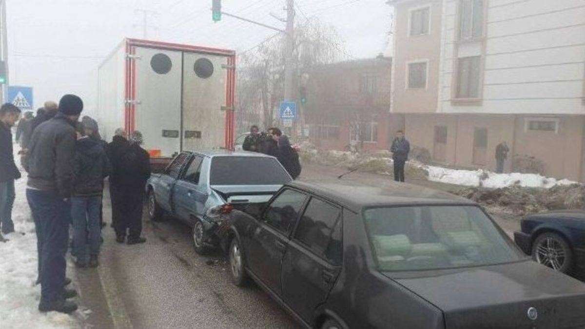 Düzce’de, üç aracın karıştığı zincirleme trafik kazasında, üç kişi yaralandı.Edinilen bilgiye göre, kaza, D-100 karayolunda meydana geldi. Sakarya’dan Bolu istikametine giden Kadir Y. idaresindeki 06 HC 455 plakalı kamyonet, İhsaniye köyü mevkisindeki sinyalizasyon ışıklarının önünde durdu. Aynı istikamette giden Temel V. idaresindeki 54 AF 789 plakalı araç da kamyonetin arkasında durdu. Yine aynı istikamete giden Zafer T. idaresindeki 67 SA 572 plakalı araç hızla gelerek, yolun kaygan olması nedeniyle öndeki otomobile çarptı, çarpmanın etkisi ile otomobil önündeki kamyona arkadan çarptı. Kazada otomobillerde yolcu olarak bulunan ve ismi belirlenemeyen 3 kişi yaralanarak ambulansla Atatürk Devlet Hastanesi’ne kaldırıldı. Kaza nedeniyle tek şeridi kapanan yol araçların kaldırılmasıyla trafiğe açıldı.