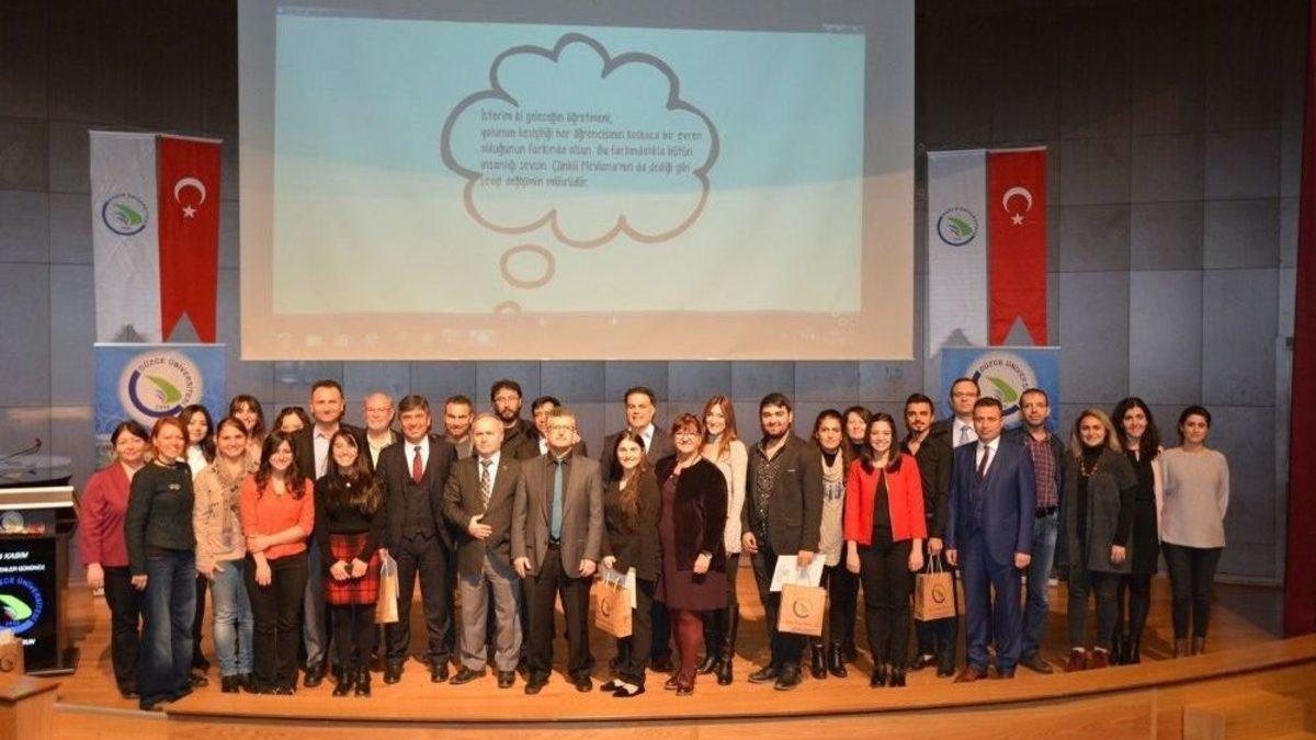 Düzce Üniversitesinde "Öğretmenlikte Dün Bugün ve Yarın" konulu program düzenlendi.Düzce Üniversitesi Eğitim Fakültesi tarafından düzenlenen Öğretmenler Günü’ne özel program, Cumhuriyet Konferans Salonu’nda gerçekleştirildi. “Öğretmenlikte Dün Bugün ve Yarın” temalı Düzce Üniversitesi Sanat Tasarım ve Mimarlık Fakültesi Müzik Bölümü öğrencileri tarafından gerçekleştirilen müzik dinletisiyle başladı. Programda, öğrenciler başarılı bir performans sergileyerek katılımcılar tarafından ilgiyle takip edildi.Müzik dinletisinin ardından Düzce Üniversitesi Eğitim Fakültesi Dekan Yardımcısı Yrd. Doç. Dr. Fidan Özbey, programın açılış konuşmasını gerçekleştirdi. Ülkemizde Öğretmenler Günü’nün 1981 yılından itibaren kutlandığını belirten Yrd. Doç. Dr. Fidan Özbey, Başöğretmen Atatürk’ün ve Millet Mekteplerinin aydınlattığı yoldan binlerce öğretmenin bu meşaleyi nesilden nesile aktardığını ifade etti. Düzce Üniversitesi Eğitim Fakültesi’nden şu ana kadar 130 öğretmenin mezun olduğunu söyleyen Özbey, bu mesleğin sorumluluğunun ve kutsallığının bilincinde olduklarını dile getirdi.Programda konuşan Rektör Yardımcısı Prof. Dr. İlhan Genç, öğretmenlerin bu anlamlı gününü kutlayarak sözlerine başladı. 8 yıl Edebiyat Öğretmenliği yaptığını belirten Prof. Dr. Genç, öğretmenlerin öğrencilere model olduğunu sözlerine ekledi. Uzun yıllar davranış eğitimi ağırlıklı bir öğretim modeli uygulandığına işaret eden Genç, 2000 yılından sonra ise öğrenci merkezli eğitime geçildiğini söyledi. Bu sistemde öğretmenin öneminin daha da arttığını vurgulayan Prof. Dr. İlhan Genç, öğretmenlerin artık öğrencisinin yeteneklerini keşfetmesini sağladığına dikkat çekti. Gazi Mustafa Kemal Atatürk’ün öğretmenlere hitaben söylediği “Cumhuriyet sizden fikri hür, vicdanı hür, irfanı hür nesiller ister.” sözünün engin bir felsefeyi yansıttığını belirterek sözlerini sonlandırdı.Program, Düzce Merkez Farabi Anadolu Lisesi Müdürü Dursun Ali Yavuzyiğit’in “Öğretmenlikte Dün Bugün ve Yarın” başlıklı sunumuyla devam etti. Edindiği tecrübeler ışığında öğretmenlikte sevgi, seviye ve sabrın öneminden bahseden Dursun Ali Yavuzyiğit, bu değerlere önem veren öğretmenlerin başarılı olduğunu ifade etti.Programın diğer konuşmacısı Yavuz Selim Mesleki ve Teknik Anadolu Lisesi Müdürü Şeref Kıldıran, “Mevzuatta Öğretmenlik” başlıklı sunumunda bilginin güç olduğunu ve duyguların matematiğine önem verilmesi gerektiğini dile getirdi.Programın bir diğer konuşmacısı Düzce Mevlana Mesleki ve Teknik Anadolu Lisesi Müdürü Şehabettin Yavuz ise “Teknolojinin Öğretmenliğe Etkisi” konulu konuşmasında, teknolojinin gelişmesiyle öğretmenlerin de bu değişime adapte olması gerektiğini söyledi. Öğrencilerin yüreğine dokunulması üzerinde duran Yavuz, bilgi ve deneyimlerini katılımcılarla paylaştı.Programda Düzce Üniversitesi Eğitim Fakültesi öğrencilerinden Ebru Baydede “Gelecekte Eğitim Sistemi ve Öğretmenlik”, Gizem Sakmen “Geleceğin Eğitiminde Teknoloji” ve Baran Tunçel ise “Nasıl Öğrenciler Yetiştirelim?” başlıklarında sunumlarını gerçekleştirdiler.Öğretmenler Günü programı, konuşmacılara teşekkür belgelerinin takdim edilmesiyle sona erdi.