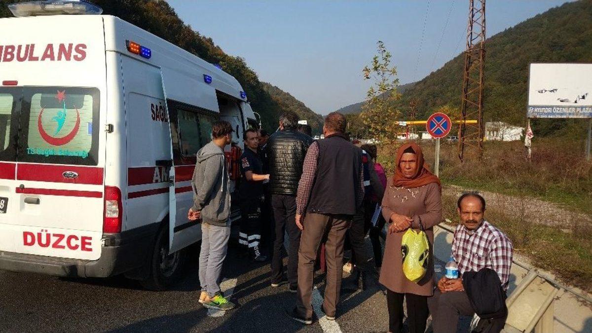 Düzce’de yolcu minibüsü ile otomobil çarpışması sonucu meydana gelen kazada 7 kişi yaralandı.Kaza; D-655 Karayolu Şifalı Su mevkiinde meydana geldi. Edinilen bilgilere göre, Düzce’den Akçakoca’ya giden Cezmi S. idaresindeki 81 KH 253 plakalı minibüs, Düzce - Akçakoca D-655 Karayolu’nun Şifalı Su mevkiinde hatalı şerit değiştirmeye çalışan Hasan Y.’nin kullandığı 81 DK 968 plakalı otomobile yandan çarptı. Çarpmanın etkisiyle yolda yan dönen otomobilin içinde bulunan Esra Ö. ve Hanife Ö. ile otomobil sürücüsü Hasan Y. yaralandı. Kaza esnasında minibüste bulunan yolculardan ise Ezgi L., Salim S., Ayşenur Y. ve Feride Ç. de yaralandı.Yaralılara ilk müdahaleleri olay yerinde bulunan vatandaşlar tarafından yapılırken, olay yerine sevk edilen 112 Acil Yardım ekipleri yaralılara müdahale etti. Hayati tehlikesi bulunmayan yaralılar, ambulanslarla Düzce Üniversitesi Tıp Fakültesi Araştırma ve Uygulama Hastanesi Acil Servisine kaldırıldı.Polis kazayla ilgili inceleme başlattı.