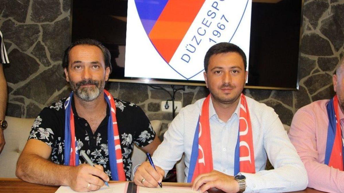 TFF 3. Lig’de mücadele eden Düzcespor, takımı Cüneyt Biçer’e emanet etti.TFF 3. Lig 2. Grup’ta mücadele eden Düzcespor’un Teknik Direktör Cüneyt Biçer ile sözleşme imzaladı.Kulüp Başkanı Özgür Sağlam, transfer komitesinin uzun bir çalışmasının ardından birçok hoca ile görüşüldüğünü fakat Cüneyt Biçer ile anlaşmaya vardıklarını söyledi. Sağlam, “Kendisi bu konuya hakim tecrübeli. Kendisi için bizim için yönetim için taraftar için hayırlı olur. İnşallah uzun süreli olur. Daha iyi yerlere geliriz” dedi.Sağlam tesislerin son durumu ile ilgile basının sorusuna ise, “Tesisler şu anda devam ediyor. Ufak bir süre uzatımı oldu. Bizim hedefimiz sezon başladıktan 1 ay içerisinde yetiştirileceğine inanıyoruz. En kötü ihtimali söylüyorum. İç aksamda ufak sıkıntılar var. Büyüklerimiz esnaf ağabeyimiz birebir geldiler bize destek sözü verdiler. Kimse bizden bir şey eksik etmiyor. Herkese teşekkür ediyoruz” şeklinde konuştu.“Takım halinde olmamız gerekiyor”Futbolda ekip çalışmasının önemli olduğunu söyleyen yeni Hoca Biçer, “Ekibimle aynı anda çalışırsak güzel olur. Benim antrenörlük anlayışında bir oyuncuya bağlanmadım. Takım olarak bakıyorum. Bir oyuncuya bağlı kalmak sizi geriye götürebiliyor. Dünyanın en iyi oyuncusu Arjantin’de ama Arjantin çeyrek final oynayamıyor. Bu yüzden tek oyuncu değil takım halinde olmamız gerekiyor” ifadelerinde bulundu."Şampiyon olacağız diyerek ahkam kesmemiz doğru olmaz"Gazetecilerin Biçer’e “Hedefiniz ne” sorusuna ise “Şampiyonluk kelimesi çok ağır bir kelimedir. Altını doldurmak gerekir. Sizler bizler herkesin tüm şehrin şampiyonluğa inanması gerekir. Ya çok iyi transferler yaparsınız çıkarsınız yener yener şampiyon olursunuz. Diğer seçenek ise bir hazırlık yaparsınız onunla ilgili gidersiniz. Şampiyon olacağız diyerek ahkam kesmemiz doğru olmaz. Yavaş yavaş hareket edeceğiz. Türkiye genelinde bir çok takım var yüzde 90’ı şampiyonluk hedefi ile başlarlar. Ben hiç bir zaman hayal satmadım. İlerleyen günde buna hepimiz birlikte göreceğiz” şeklinde konuştu.Konuşmaların ardından ise imzalar atıldı yönetim ile birlikte günün anısına hatıra fotoğrafı çektirildi.