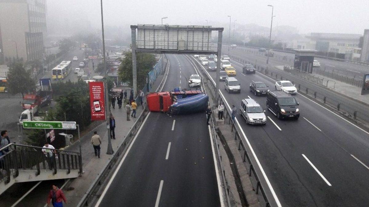 İstanbul’da E-5 karayolu Çağlayan mevkiinde sürücünün hakimiyetini kaybettiği sebze-meyve yüklü kamyonet bariyerlere çarparak devrildi. Olay sonrasında yol trafiğe kapatılırken, meyveleri toplamaya gelen şahsın yakınlarının yola devrilen elmadan yemesi ilginç görüntüler oluşturdu.Kaza, saat 07.45 sıralarında E-5 karayolu Ankara istikametinde Çağlayan mevkiinde meydana geldi. İddiaya göre, halden meyve sebze alıp 34 ZN 3197 plakalı kamyonetle yola çıkan Mustafa S. sağ taraftan gelen aracın üzerine geldiğini düşünerek bir anda direksiyon hakimiyetini kaybetti. Önce başka bir araca, ardından bariyerlere çarpan sebze meyve yüklü kamyonet yan yolda devrildi. Olay yerine sağlık ve polis ekipleri sevk edildi. Olayda kamyonetle ve araç sürücüsü yara almazken, sebze ve meyveler yola saçıldı. Kazanın ardından olay yerine meyveleri toplamaya gelen sürücünün yakınlarının meyveleri yemesi ise dikkat çekti.