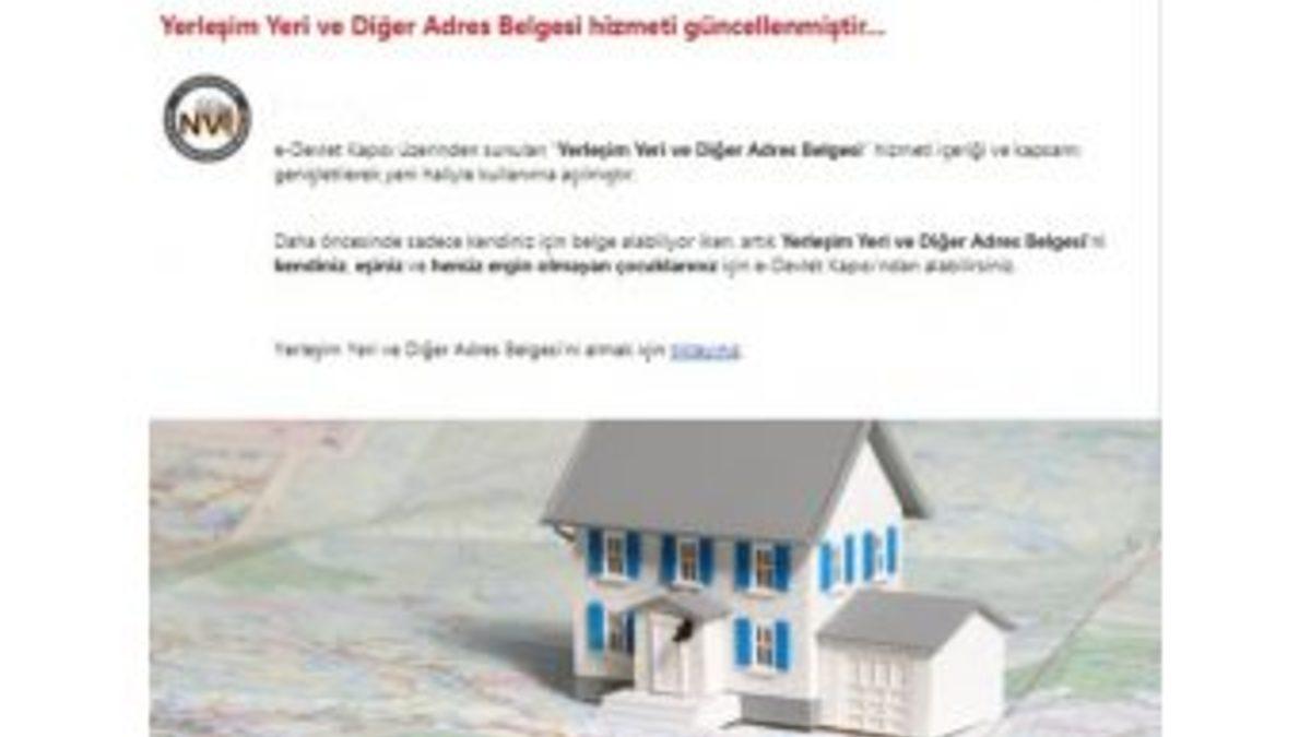 E-Devlet Kapısı üzerinden sunulan “Yerleşim Yeri ve Diğer Adres Belgesi” hizmeti, içeriği ve kapsamı genişletilerek yeni haliyle kullanıma açıldı.Daha öncesinde e-Devlet Kapısı’ndan sadece kendi için belge alınabiliyor iken, artık Yerleşim Yeri ve Diğer Adres Belgesi’ni kendi, eşi ve henüz ergin olmayan çocukları için belgeleri alınabilecek.