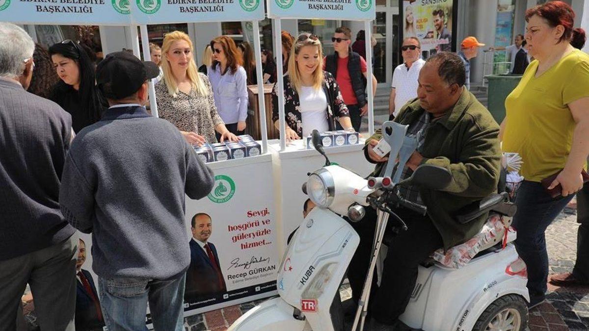 Edirne Belediye Başkanlığı tarafından geleneksel hale getirilen kandil simidi ikramına Miraç Kandili’nde de devam edildi.Edirne Belediye Başkan Vekili Selçuk Çakır, Saraçlar Caddesi’nde kandil simidi ikramında bulunarak; Edirnelilerin ve tüm Müslüman aleminin Miraç Kandili’ni kutladı. Çakır, Miraç Kandili’nin tüm insanlığa sağlık, huzur, mutluluk getirmesini diledi.Saraçlar Caddesi başta olmak üzere 24 mahallede toplamda 10 bin kutu kandil simidi ikramında bulunacaklarını ifade eden Çakır, "En kutsal gecelerden biri olan Miraç Kandili’nde Peygamberimiz Hazreti Muhammed göğe yükselmiştir. Miraç bizler için çok anlamlı ve önemli bir gündür. Bu anlamlı günde, her kandilde olduğu gibi halkımıza kandil simidi ikramında bulunduk. Halkımız teveccüh gösterdi, ilgi gösterdi" dedi.