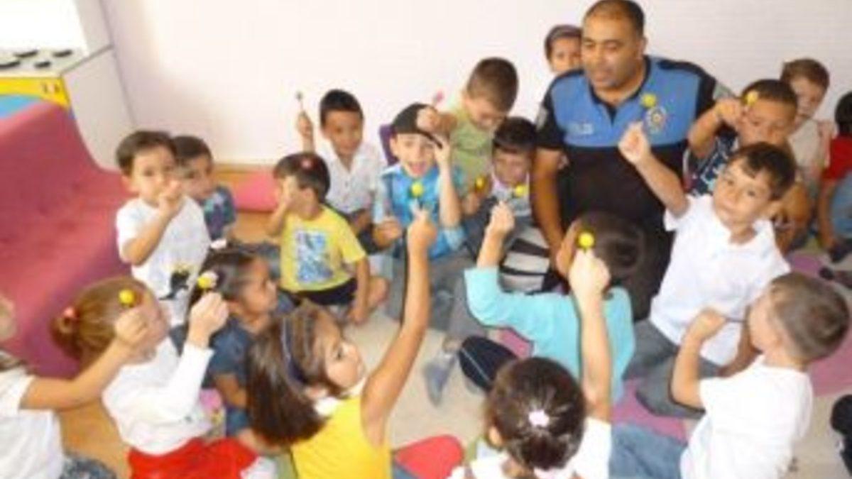 Yaptıkları sosyal etkinliklerle toplumun daha bilinçli hale gelmesi için çalışmalarını sürdüren Toplum Destekli Polislik Büro ekipleri, 2012 - 2013 eğitim öğretim yılının başlaması ile birlikte okul öncesi eğitimi gören anaokulundaki minikleri de unutmadı. Atatürk Mahallesi’nde (TOKİ) bulunan Şehit Kadir Altınöz Onbaşı İlköğretim Okulu’nu ziyaret ettiler. İlk olarak okul müdürü Hüseyin Gümüş’ü ziyaret eden ekipler, ardından anaokulundaki miniklerle sohbet ederek, tanımadıkları insanlarla konuşmamaları, okuldan tek başına ayrılmamaları, cadde üzerinde oyun oynamaması ve araçların ön koltuklarına oturmamaları gibi güvenli yaşam için dikkat etmeleri gereken kuralları anlattılar.