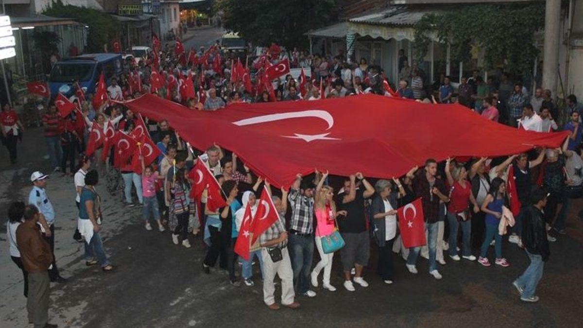 Balıkesir’in Edremit ilçe merkezindeki fener alayı etkinliği Gümrük Meydanı'ndan başladı. Ellerinde Türk bayrakları ve meşaleler bulunan ve çoğunluğunu kadınların oluşturduğu yaklaşık bin 500 kişilik grup, "Ulusal bayraklar engellenemez. Mustafa Kemal’in askerleriyiz." şeklinde slogan attı. Dev Türk bayrağını taşıyan bayanlar, korteji evlerinden ve iş yerlerinden izleyen vatandaşlardan alkış topladı. Çalınan müzik ve 10 Yıl Marşı eşliğinde yürüyüşe geçen kortej, Çayiçi Caddesi'ni takiben Cumhuriyet Meydanı'na kadar ilerledi. Cumhuriyet Meydanı'nda son bulan yürüyüşün ardından, meydanda meşaleler yakıldı ve saygı duruşunda bulunulup İstiklal Marşı söylendi.