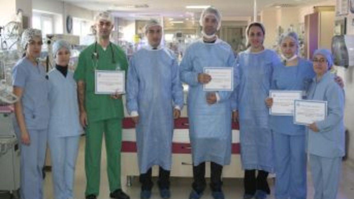 Üniteyi ziyaret eden Opr. Dr. Saçkan, “Burası, 3. basamak yoğun bakım ünitesi olarak hizmet veriyor. İki yeni doğan uzmanı, 30 hemşire ve altı yardımcı personel çalışıyor. Yatak kapasitesi 30 olan ünitemizde, 13 adet solunum cihazı bulunuyor. Hasta yatağındayken göz muayenesi, beyin ve kalp ultrasonagrafisi (ekokardiyografi) ile röntgen çekilebiliyor. Her türlü girişimsel işlemle birlikte 500 gr.'a kadar olan çok küçük prematüre bebeklerin takip ve tedavisi yapılabiliyor. Merkezimiz, çevre illere de hizmet veriyor.” dedi. Ünitede ağızdan beslenemeyen yeni doğan bebeklerin serum yoluyla damardan beslenebilmesi için serumların TPN cihazıyla el değmeden hazırlandığını ifade eden Saçkan, “TPN cihazı Denizli’deki sağlık kuruluşları arasında tek, Türkiye çapındaysa 40 üniteden biridir.” diye konuştu. Daha sonra Opr. Dr. Saçkan, başarılı tedavi uygulamaları ve özverili çalışmalarından dolayı yeni doğan yoğun bakım ünitesi doktorları ve hemşirelerine teşekkür belgesi verdi.