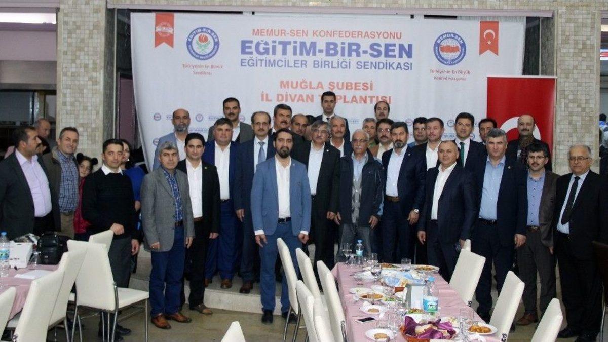 Eğitim Bir-Sen Muğla Şubesi’nin aylık il divan toplantısı Menteşe Öğretmenevinde yapıldı. İl Divan toplantısına Eğitim Bir-Sen Genel Başkan Vekili Latif Selvi de katılırken, Selvi öğretmene performans değerlendirmesi ile ilgili çalışmalara sert tepki gösterdi.İl Divan toplantısının açılışında konuşan Memur Sen İl Başkanı ve Eğitim Bir-Sen Muğla Şube Başkanı Önder Uçak, “Eğitim-Bir-Sen olarak sınav tartışmaları, ders kitaplarındaki yanlışlar, sözleşmeli öğretmenlik, öğretmene performans uygulamasında ve eğitimin her alanında, bakanlığın tutarsız uygulamaları karşısında cümle kurarken, yanlışı söyleyip, itiraz etmekle kalmayıp sendika olarak çözüme dair çalışmalarımızı öğretmenlerimiz ve eğitim çalışanlarımızla paylaşıyoruz. Muğla’da en büyük sendika olarak, tüm sendika yöneticilerimizle sürekli alanlardayız. Eğitim çalışanlarının sorunlarına çare olmak adına okullarda, kurumlarda ve aynı zamanda sosyal faaliyetlerde üyelerimizle birlikteyiz. Rakip sendikaların üye kaybı ile her geçen gün erimeleri karşısında, üye sayımızı artırmaya devam ediyoruz. 2016 yılında yüzde 40’ın üzerinde üye artışı ile 3 bin 723 üye sayısına ve yetkiye imza attığımız mutabakatla Muğla’da yetkiyi Eğitim Bir-Sen’le tanıştırdık. Muğla’nın 13 ilçesinin 9’unda ve KYK da yetkiliyiz 4 ilçemiz ve Üniversite’de yetkiyi alma adına çalışmalarımız ve gayretlerimiz devam ediyor. Hedefimiz 2018 yılında tüm ilçelerimizde ve üniversitede yetkili sendika olmaktır” dedi.Eğitim Bir-Sen Genel Başkan Vekili Latif Selvi, sendikacılığın geçmişi ve neden ihtiyaç duyulduğuna ilişkin açıklamasının ardından, gündeme ilişkin sınav sistemi ve öğretmene performans değerlendirmesi ile ilgili açıklamalarda bulundu. Selvi, “Eğitimde yapılması gereken şudur. Çocuklarımızın geleceği pedagojik olarak dikkate alınmalı ve onları emsalleri ile yarışır hale getirmektir. Bunun dışında çocuklarımıza vereceğimiz diğer konular, memleket sevgisi, ülke sevgisi, insanını sevmesi ve insanlığın geleceğine sunacağı katkıdır. Bunun dışında herhangi bir dönüşüm projesinin parçası haline getirilmek suretiyle bir ideolojik dayatmayı insanımıza ve çocuklarımıza gelecek ümidi gibi rastgele bir şekilde yüklenmesinde istenilen neticenin elde edilmesi mümkün olmaz” dedi.Gerek çalışma hayatında, gerekse eğitimin geleceğinde eğer bir yanlış uygulama varsa kendilerinin devre girmesi ile bu sorunun çözüldüğüne dikkat çeken Selvi, “Biz devreye girmezsek, maalesef bir avuç bürokratın keyfi uygulamalarıyla eğitim travmaları katlayarak devam ediyor. Geçmişte çok sınırlı sayıda üniversite vardı. Yıllarca bu üniversitelere bizi mahkum ettiler. Daha yakın zaman diliminde üniversiteleşme başladı. AB içinde en fazla okullaşma oranı olan biziz. Genç nüfusu olan bir ülkeyiz biz. Bu çocuklarımızı biz niye eğitmeyelim. Biz sınav konusunda şunu söyledik. Sınav iki türlü yapılsın, her iki sınavda da soru sayısı arttırılsın, seçicilik olsun ve bu çerçevede de birinci isınavda bütün yeterlilikler sorunun konusu olsun” dedi.Öğretmene performans değerlendirmesi yapılması ile ilgili görüşlerini açıklayan Selvi, “Biz bunu bir facia olarak değerlendirdik. Öğrenciliğe başladığımızdan bu yana sınavdan geçiyoruz. Bütün sınavları başarı ile geçiyoruz, hala sınav getiriyorlar önümüze. Öğretmenin kusuru yok, kusur eğitim politikalarından kaynaklanıyor. Öğretmen kadar denetlenebilir başka bir mekanizma yok. Bunun için de böyle bir uygulamanın yapılmasına müsaade etmeyiz. Performans konusunda göreceli bir şekilde herhangi bir ölçü temeline dayanmayan ve kişilerin keyfi bir şekilde puanlama yapmasına son derece müsait bir uygulama ile okullarımızın öğretmenler odasına fitne ateşi yakmak isteyenler bu ülkede kast edecek bir kusur işlediklerini kendilerine söyledik. Öğretmenin başarısı ödüllendirilir. Performans ile ilgili pilot uygulamayı başlattılar. Bununla ilgili eylem kararı aldık. Bütün arkadaşlara 100 verelim dememizdeki üç temel neden var. Birisi bu sistemin istenildiği gibi puanlamaya müsait olduğunun gösterilmesi, ikincisi eğer benim öğretmenime bir değer biçilecekse tam puandır. Üçüncüsü de bu uygulamadan derhal vazgeçmelisiniz, böyle bir seçicilik olamaz. Eylem kararı aldık ve asla Allah’ın izni ile bunu hayata geçirtmeyeceğiz” dedi.