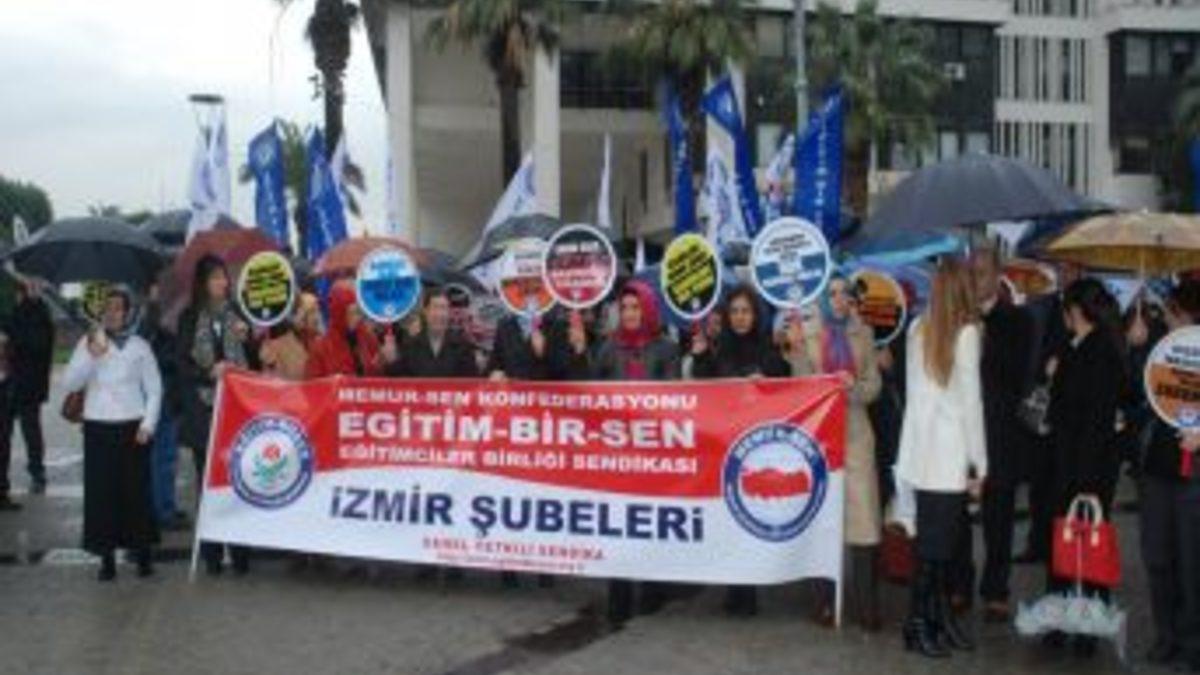 Eğitim Bir Sen İzmir Şubesi, Konak Meydanı'nda 10 Aralık Dünya İnsan Hakları Günü dolayısıyla, “Kamusal alan, koca bir yalan” sloganıyla basın açıklaması yaptı. Yağmur altındaki açıklamada sendika üyesi kadınlar, ellerinde çeşitli dövizlerle seslerini duyurmaya çalıştı. Başörtülü kadınlara hayatın her alanında özgürlük sağlanmasını isteyen Eğitim Bir Sen Kadınlar Komisyonu Başkanı Burçak Akseki, devletin herkese karşı eşit olmasını istedi.