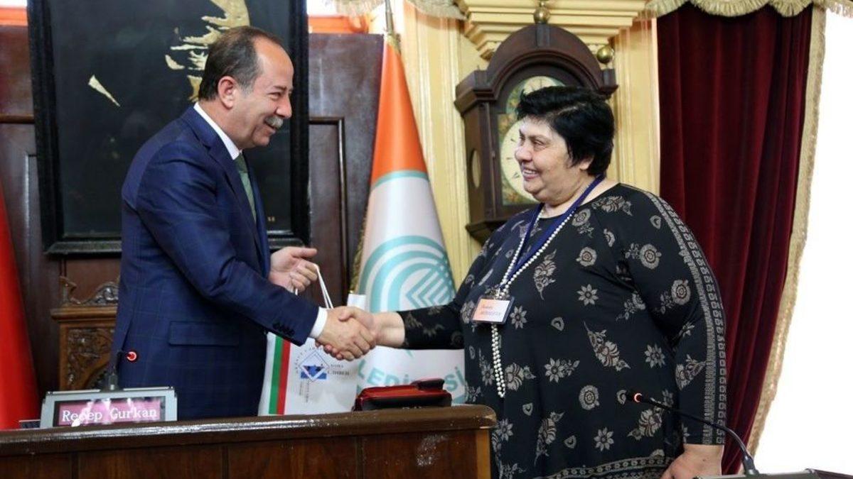 Okul terki ve öğrenci devamsızlıkları kapsamında ERASMUS Projesi yürüten Türkiye, Bulgaristan ve İspanya’nın müfettişleri Edirne’de buluştu. Edirne Belediye Başkanı Recep Gürkan’ı ziyaret eden eğitim müfettişleri Edirne’yi çok beğendiklerini, Türkiye hakkındaki düşüncelerinin de değiştiğini söyledi.ERASMUS Projesi kapsamında ilk olarak Bulgaristan’da bir araya gelen eğitim müfettişlerinin ikinci durağı Edirne oldu. 2-5 Mayıs 2017 tarihleri arasında gerçekleştirilecek olan toplantı için Edirne’de bulunan eğitim müfettişleri Edirne Belediye Başkanı Recep Gürkan’ı ziyaret etti.Edirne Belediyesi Meclis Salonu’nda gerçekleştirilen ziyarette konuşan Başkan Gürkan, kendisinin Milli Eğitim Müdürlüğünde uzun süre görev yaptığını söyledi. Öğretmenliğin yanı sıra yöneticilik de yaptığını belirten Gürkan, milletvekilliği döneminde de eğitim komisyonunda yer aldığını anlattı. Öğrenci devamsızlıklarının sona ermesi için bir takım çalışmaların da yapıldığını ifade eden Gürkan, eğitim seviyesi ile öğrenci devamsızlıklarının doğru orantıda olduğunu söyledi.Bulgaristan ve İspanya’dan gelen misafirlere Edirne hakkında da bilgi veren Gürkan, "Edirne, 8 bin 300 yıllık bir tarihe sahiptir. Traklar, Makedonya, Doğu Roma, Osmanlı İmparatorluğu’na ev sahipliği yapmış birçok medeniyeti içinde barındırmıştır. Medeniyetlerin buluşma noktası olan Edirne’de hala bu hoşgörüye sahiptir. İnsanlarımız bu kentte huzur ve barış içerisinde yaşamaktadır" diye konuştu.Tarihi Belediye Binası hakkında da bilgi veren Gürkan, "Şuan içerisinde bulunduğumuz bu bina 117 yıllıdır, belediye binası olarak kullanılmaktadır. Belediye Meclisi’nin duvarında yer alan tablo ise 1902 yılı belediye meclisine aittir. Bu tabloda bulunan 12 belediye meclisi üyesinde 6’si Müslüman, 6’si ise Gayrimüslimdir" dedi.Edirne Belediye Başkanı Recep Gürkan’a öğrencilerin kendi elleriyle hazırladıkları hediyeleri takdim eden eğitim müfettişleri, Edirne’yi çok beğendiklerini söyledi. Gürkan da eğitim müfettişlerine Edirne’ye özgü hediyeler takdim etti.Bulgar ve İspanya’dan gelen misafirler daha sonra Atatürk Odası’nı gezdi, Atatürk heykeliyle birlikte hatıra fotoğrafı çektirdi.