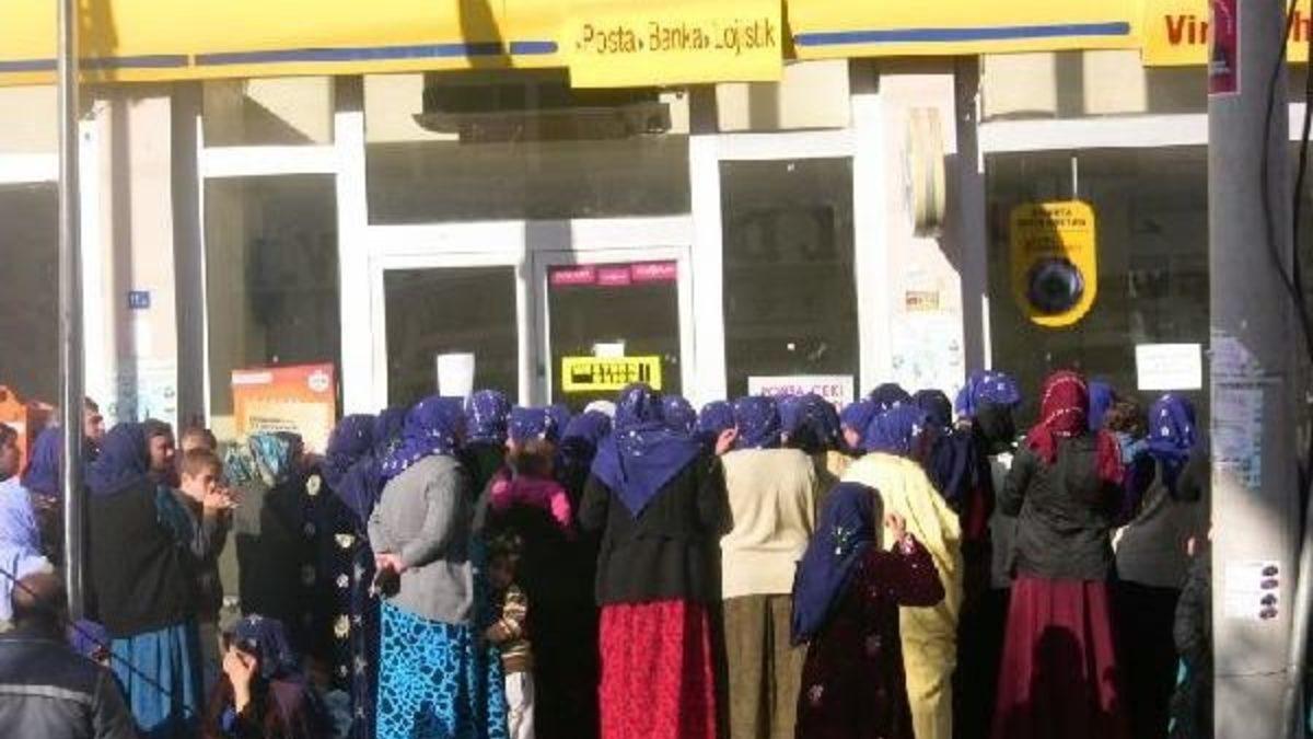 Mustafa MERT/VİRANŞEHİR Viranşehir'de çok sayıda kadın, Şartlı Nakil Transferi kapsamında 3 ayda bir dağıtılan eğitim yardımını almak için Kışla Mahallesi'nde bulunan PTT binası önünde kuyruğa girdi. 35 ile 55 lira arasındaki yardımdan yararlanmak isteyen kadınlar, PTT önünde uzun kuyruk oluşturdu. Gruplar halinde içeri alınmak istenen kadınlar aynı anda içeri girmek isteyince izdiham yaşandı. Saatlerce sırada beklediğini söyleyerek şikayet eden kadınlar, ilçede PTT şube sayısının artırılmasını istedi.