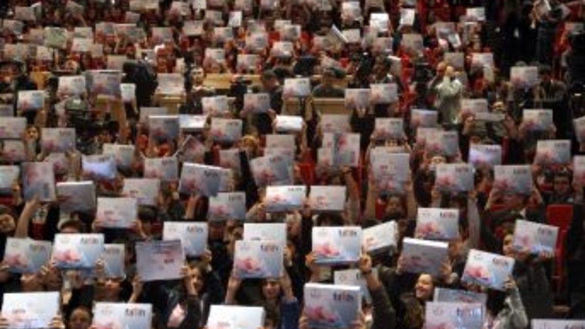 Milli Eğitim Bakanı Nabi Avcı, FATİH projesine ilişkin, “FATİH projesinin en öncelikli hedefi özünde öğretmenlerimizin işlerini daha iyi yapabilmesi için imkan sağlamak. Öğretmenlerimize bugüne kadar hayal bile edemedikleri fırsatlar ve imkanlar sağlıyor” dedi.Başbakan Recep Tayyip Erdoğan, Eğitimde FATİH projesi dağıtım törenine katıldı. ATO Congresium'da düzenlenen programa Milli Eğitim Bakanı Nabi Avcı, Ulaştırma, Denizcilik ve Haberleşme Bakanı Lütfi Elvan, Bilim, Sanayi ve Teknoloji Bakanı Fikri Işık, eski Milli Eğitim Bakanı Ömer Dinçer, Ankara Valisi Alaattin Yüksel, AK Parti Genel Başkan Yardımcıları Numan Kurtulmuş ve Salih Kapusuz, öğretmenler ve çok sayıda öğrenci katıldı. Törende konuşma yapan Ulaştırma, Denizcilik ve Haberleşme Bakanı Elvan, Milli Eğitim Bakanlığı ile birlikte gerçekleştirilen FATİH projesinde bugün önemli bir noktaya geldiğini vurgulayarak, “675 bin öğretmen ve öğrencimize tabletlerini teslim edeceğimiz bu önemli günde sizlerle bulunmaktan büyük bir memnuniyet duyuyorum. Hükümetimiz döneninde, geçtiğimiz 11 yılda; Türkiye’nin bilgi toplumuna dönüşmesi için hem alt yapı alanında hem de eğitim alanında önemli yatırımlar gerçekleştirdik" dedi.“Yapılan bu yatırımların hedefi Türkiye’nin bilgi çağında gelişmiş ülkeler içerisinde yer alması, gençlerimizi, firmalarımızı, Türkiye’mizi dünya ile rekabet edebilecek güce kavuşmasıdır" diyen Elvan, "Bu çağın motor gücü bilgidir. Bilgiye sahip olan ve onu iyi kullanabilen toplumlar diğerlerinin hep önünde olmuşlardır. Bilgi toplumunun ana faktörü ise gençler ve çocuklardır. Çocuklarımızı ve gençlerimizi bilgisayar okuryazarı yapmak ve dünyada kendi rekabet edebilmesini sağlamak amacıyla okullarımızın tamamında bilgisayar sınıfları oluşturduk. Tüm okullarımıza geniş bant internet götürdük. Kablolu ve kablosuz gelişim imkanı bulunmayan 5 bin 200 köy okuluna uydu üzerinden internet girişim alt yapısı götürdük. Yaklaşık 22 bin okula bilgisayar teknoloji sınıfı kurduk. Bunlara eş zamanlı olarak ise bilgisayar okuryazarlığının tabana yayılması içinde kütüphanelere, halk eğitim merkezlerine, merkezi eğitim merkezlerine, beldelerimize, köylerimize 3 bin üzerinde kamu internet giriş merkezleri kurduk. Vatandaşların, kamu hizmetleri elektronik ortamda almalarını sağlayan E-Devlet projelerini gerçekleştirdik. Yaptığımız bu hizmetlerle ülkemiz bilgisayar okuryazarlığında Avrupa’nın en önde gelen ülkelerinden biri haine geldi. Bakanlığıma bağlı Haberleşme Genel Müdürlüğümüz FATİH projenin birince fazında 3 bin 657 okula 84 bin 920 etkileşimli tahta, 3 bin 657 adat çok fonksiyonlu yazıcı ve doküman gerçekleştiği ve Milli Eğitim Bakanlığımıza bunu teslim etti” şeklinde konuştu. Elvan, şöyle devam etti:“Projenin ikinci fazında ise çalışmalarımızı tamamlayarak 41 bin 996 okula 347 bin 367 adet etkileşimi tahta ve 41 bin 996 adet çok fonksiyonlu yazıcı alım ihalesini tamamlamış buluyoruz. Ünümüzdeki yıl ağustos ayı itibariyle 100 bin etkileşimli tahtaya okullarımıza yerleştirmiş olacağız. Önümüzdeki yıl ağustos ayı itibariyle kalan 250 bin etkileşimli tahtayı yine okullarımızda tüm öğretmenlerimiz ve öğrencilerimiz hazır halde bulunacaklardır. Bu proje tamamlandığında sadece her okulumuza yüksek standartlı eğitim alt yapısını kavuşturmakla kalmayacak, bu projenin bölgesel arasında farklılıkları ortadan kaldıracak, eğitimde fırsat eşitliğini getirecek, ülkemizin bilgi toplumuna dönüşmesini sağlayacak ve en önemlisi de bu projesiyle okullarımız adeta birer bilgi yuvasına düşünecektir.”Milli Eğitim Bakanı Avcı, FATİH projesinin önemine vurgu yaparak, “İsimsiz kahramanlar bugüne kadar 10 binlerce tablet bilgisayarı öğrencilerimizle buluşturdular. Mart ayının sonuna kadar bu sayı 675 bini bulacak. Arkadaşlarımız geçe gündüz çalışarak sınıflarımızı etkileşim tahtaları ile donatıyorlar. Binlerce kilometrelik ağ alt yapısı yardımıyla gerçek dünya ile entegre ediyorlar. Ağ alt yapısı ulaşamayan kırsal bölgeler gözden çıkarılmıyor 4 bin okulumuzu uydu bağlantısı ile bağlıyorlar. Toplamda 500 bin dersliğimizin hepsinde etkileşim tahtası olacak ve 50 bin okulumuzun her biri internet bağlantısına sahip olacak. Bütün okullarımızdaki öğretmenlerimiz de, ortaokul ve lisedeki öğrencilerimize toplam 10 milyondan fazla tablet bilgisayarı ve her okulumuza çok fonksiyonlu fotokopi makinalarını dağıtacağız. Projeyi özel ve önemli kılan yanı çocuklarımıza öğretmenlerimize ve öğrencilerimize sağladığımız araç ve gereç değil. Proje de görev alan arkadaşlarımız başta eğitim içeriği olmak üzere, projenin başarısı için gereken bileşenler konusunda olağan üstü çaba harcadılar” dedi. Eğitim Bileşim Ağı (EBA)’yı geliştirdiklerini belirten Avcı, şunları kaydetti:“EBA bünyesinde 5 binden fazla ders anlatım ve tanıtım videosu, kazanımlara yönelik 3 binden fazla sesli metin müfredata uygun 50 binden fazla görsel malzeme, binden fazla dergi, bin 500 eğitim kitabı yayınlandı. Ayrıca 11 kamu portalı, öğretmen ve öğrenciler için 43 eğitim portalı, özellikle öğretmenlerimize özgü 27 portal oluşturuldu. Dünya çapında kullanılan eğitim kaynakları grup teknolojisiyle EBA içeriği olarak öğretmen ve öğrencilerimize sunuldu. Teknolojinin beklenen gelişimi sunabilmesi için eğitim ortamının bütünüyle değişeceğini ve anlayışımızda bu değişime uyum sağlaması gerektiğini biliyoruz.”Tabletlerde ve etkileşim tahtalarında yer alan FATİH yazılımını geliştirdiklerini ifade eden Avcı, “Öğretmenlerimiz bu yazılım yardımıyla işledikleri dersleri dijit