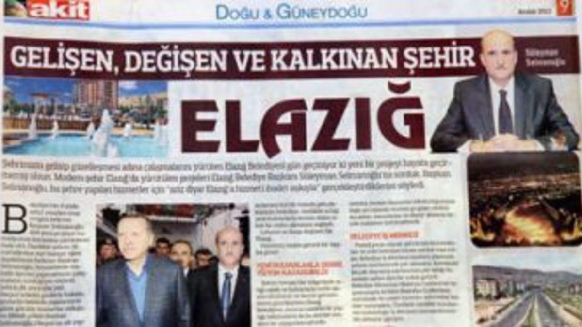 Birçok ulusal gazetenin ardından son olarak Yeni Akit Gazetesi de Elazığ Belediyesi’ne sür manşetten ve iç kısımdan geniş yer ayırarak övgü dolu ifadeler kullandı.
