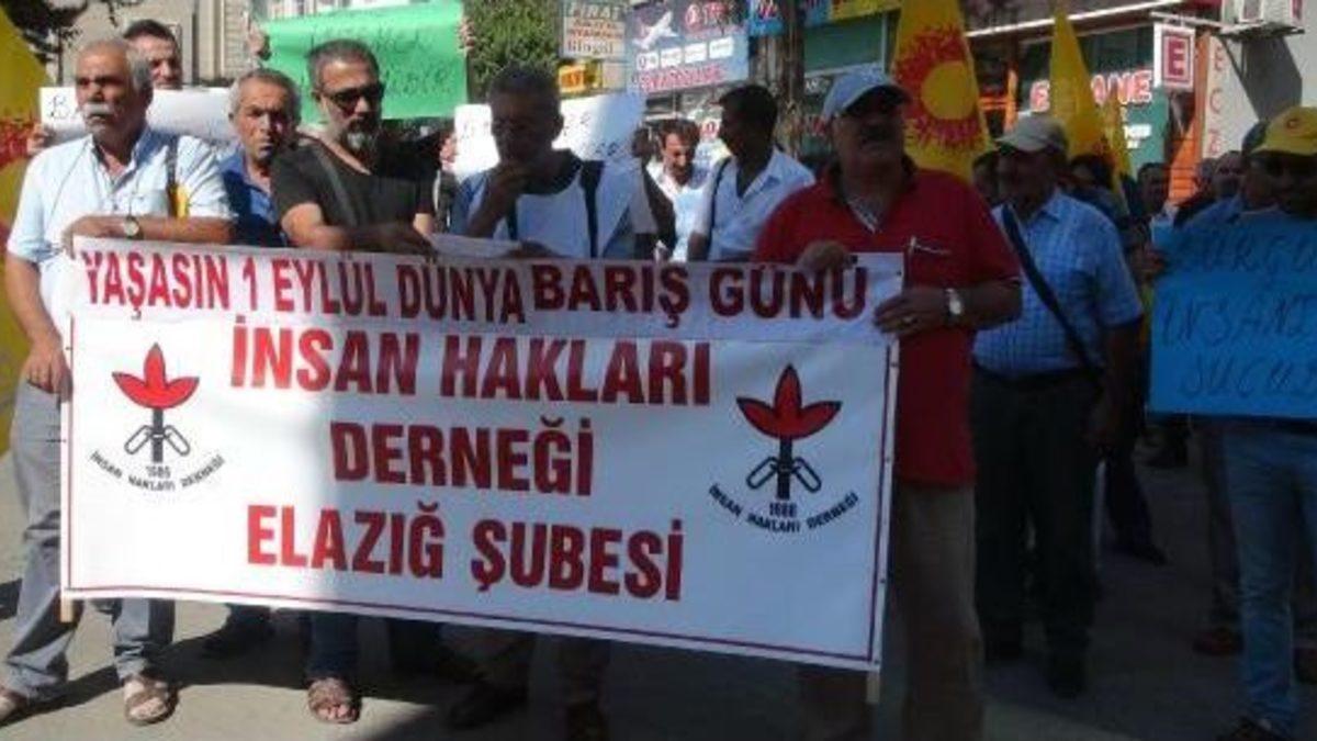 - ELAZIĞ'da, 1 Eylül Dünya Barış Günü nedeniyle Kamu Emekçileri Sendikaları Konfederasyonu (KESK) ve İnsan Hakları Derneği (İHD) tarafından Hozat garajında basın açıklaması yapıldı. İHD Şube Başkanı Behzat Hazır, "Kutsal barış hakkını savunmak bir görevdir. Çatışmanın en yoğun olduğu dönemde dahi barışı hatırlatmak hepimizin görevidir" dedi.