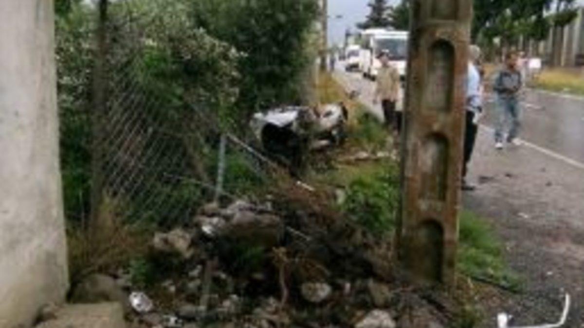 Hatay’ın Dörtyol ilçesinde elektrik direğine çarpan otomobilin sürücüsü yaralandı.Edinilen bilgiye göre, Dörtyol’dan Payas yönüne giden Semih Aydın’ın (35) kullandığı 31 NY 292 plakalı otomobil, yağış nedeniyle kayganlaşan yolda direksiyon hakimiyetinin kaybolması sonucu yol kenarındaki elektrik direğine çarptı.Kazayı görenlerin haber vermesi üzerine otomobil içerisinde sıkışan sürücü olay yerine gelen sağlık ve polis ekiplerince ağır yaralı olarak çıkartıldı. Sürücü Semih Aydın ilk müdahalesinin ardından Dörtyol Devlet Hastanesine kaldırıldı.Hurdaya dönen otomobil çekici yardımıyla kaldırıldı.