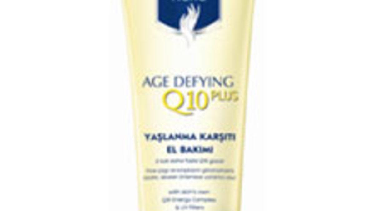 NIVEA Hand Age Defying Q10 PLUS, 2 kat koenzim Q10 içeren yeni formülüyle, elleri yaşlanmaya ve leke oluşumuna karşı 2 kat kuvvetle koruyor. Koenzim Q10 cilde derinlemesine nüfuz ederek, hücrelerin enerji metabolizmasını hızlandırıyor. Zamanla esnekliğini kaybeden elleri gözle görülür derecede yumuşak ve sıkı kılıyor, ince çizgi ve kırışıkların görünümünü azaltıyor. Aynı zamanda etkin bakım yapan yaşlanma karşıtı el bakım kremi; içeriğindeki UVA/UVB filtreleri sayesinde elleri zararlı güneş ışınlarından koruyarak, erken cilt yaşlanmasını ve lekelerin oluşumunu önlüyor.