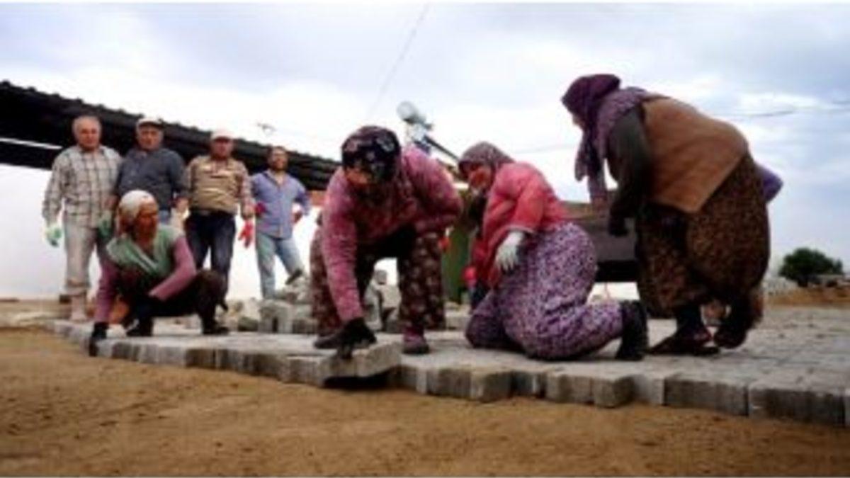 Sarıgöl İlçesi’ne bağlı Emcelli Köyü’nün kadınları caddelerine kilit taş döşedi.Emcelli Köyü’nün cadde ve sokaklarına kilit...