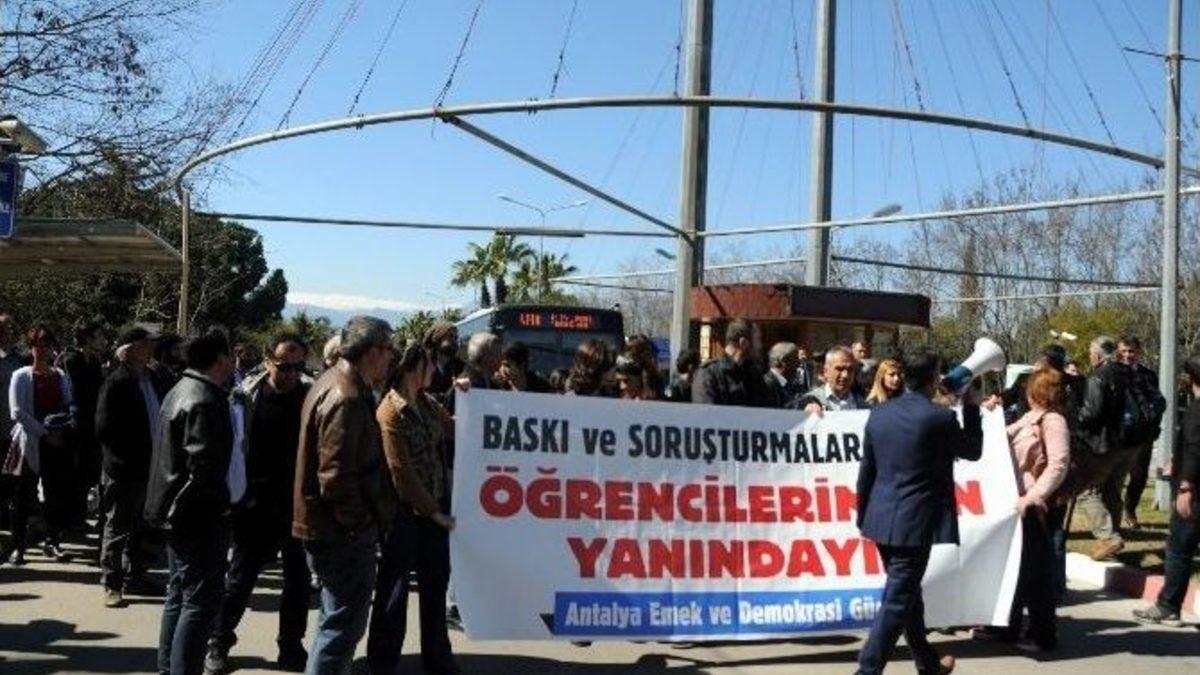 Antalya Emek ve Demokrasi Güçleri, ülke genelindeki üniversitelerde ve Akdeniz Üniversitesi’ndeki öğrencilere yönelik artan baskı, saldırı ve soruşturmaları protesto etmek için basın açıklaması yaptı.Akdeniz Üniversitesi(AÜ) Meltem Kapısı’nda bir araya gelen Emek ve Demokrasi Güçleri üyeleri ve üniversite öğrencileri adına basın açıklamasını Eğitim Sen Antalya Şubesi Sekreteri Hüseyin Karabulut yaptı. Soruşturmaları protesto etmek isteyen öğrencilerin üzerine polis ve özel güvenlikçilerin gönderildiğini ileri süren Karabulut, üniversitelerde şiddet olaylarının tırmandığını kaydetti. Akdeniz Üniversitesi’nde silahlı kişilerin olduğunu ve öğrencileri tehdit ettiğini iddia eden Karabulut, "Daha önce de demokratik ve anayasal haklarını kullandıkları gerekçesiyle yüzlerce öğrenciye soruşturma açan ceza yağdıran AÜ, siyasi iktidarın istediği korku iklimini oluşturamamış olacak ki şimdi de polis, özel güvenlik ve sivil faşist üçlüsünü sahneye sürmüştür. Buradan AÜ Rektörü Prof. Dr. İsrafil Kurtcephe’ye sesleniyoruz. İlerici ve yurtsever öğrencilerin basın açıklamalarında stant açmalarına bile tahammül edemezken, silahla elini kolunu sallayarak dolaşanlara neden engel olmuyorsunuz? Bunlar üniversite öğrencisi midir? Bilginiz dahilinde mi üniversite içinde dolaşıyor? Bunlara ilişkin yaptığınız bir şey var mı?" diye sordu.Basına yansıyan silahlı fotoğraflara ilişkin ciddi bir soruşturma başlatılması gerektiğini belirten Karabulut, "Aksi halde üniversitemizde yaşanacak herhangi bir olumsuzluğun baş sorumlusu Rektör ve Antalya Valisi olacaktır. Emek ve Demokrasi Güçleri olarak gelişmeleri yakından takip ediyoruz" diye konuştu."Baskı ve soruşturmalara karşı öğrencilerimizin yanındayız" pankartı açan platform üyeleri daha sonra sessizce dağıldı.Açıklamanın ardından kapanan yol yeniden trafiğe açıldı.
