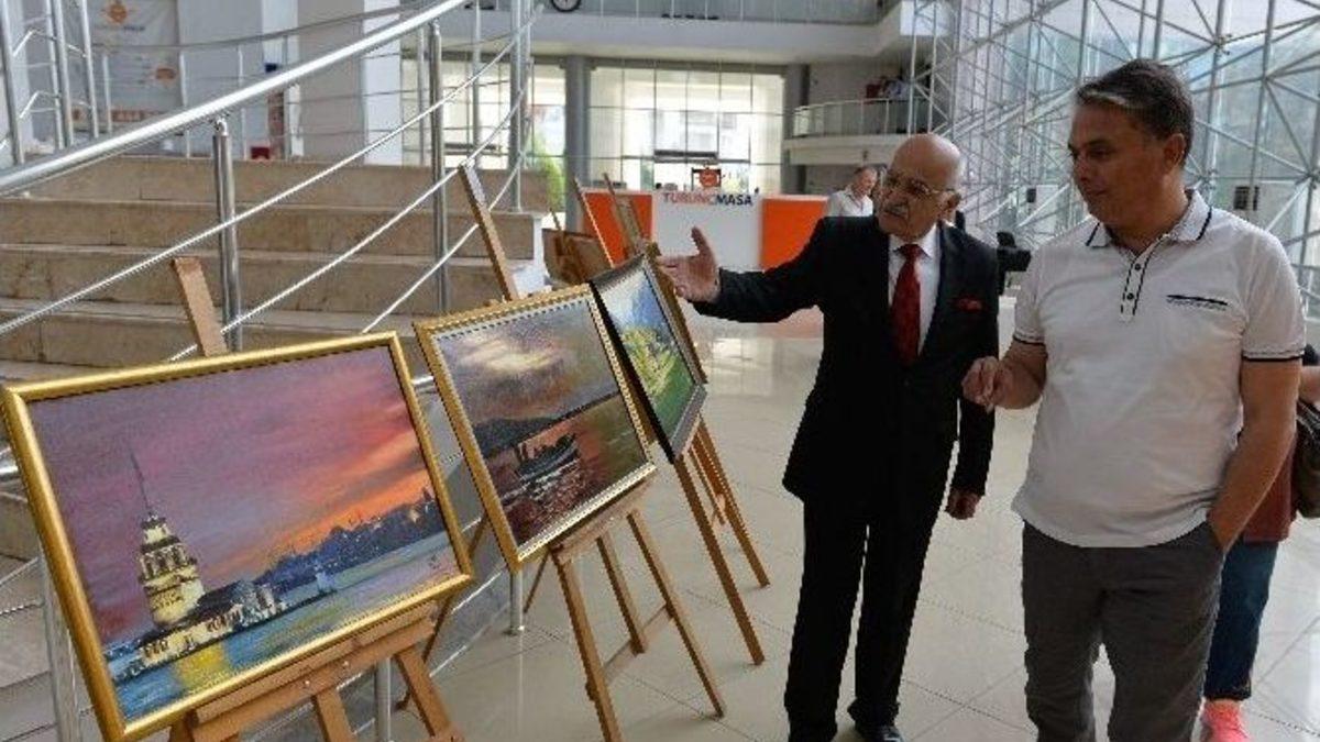 Muratpaşa Belediye Başkanı Ümit Uysal, belediye fuaye alanında kişisel yağlı boya resim sergisini açan emekli...