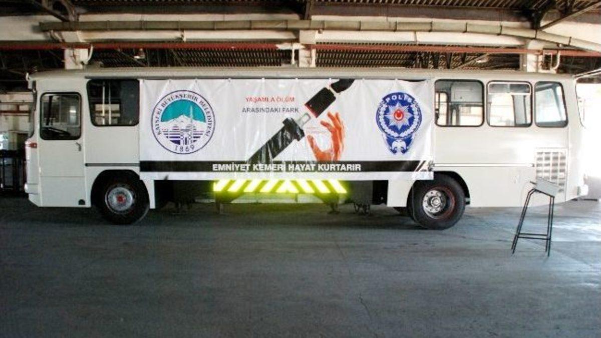 Emniyet Kemeri Eğitim Aracı için eski bir otobüs kullanıldı. Otobüsün yan saçları açıldı ve 6 metrekarelik alan oluşturularak araç şasesi üzerine kayan platform yapıldı. Platform hidrolik sistemle kayarak çıkıyor ve köşelerindeki fotoseller vasıtasıyla durarak sabitleniyor. Tam otomasyonlu yapılan araç Emniyet Müdürlüğü'ne verilecek ve Emniyet Müdürlüğü kalabalık alanlarda bu aracı eğitim amaçlı kullanacak. Başta Cumhuriyet Meydanı olmak üzere halkın yoğunlukla kullandığı bölgeler ve okullarda emniyet kemerine dikkat çekecek olan araç, emniyet kemeri takmayan bir sürücünün nelerle karşılaşabileceğini uygulamalı olarak gösterecek.