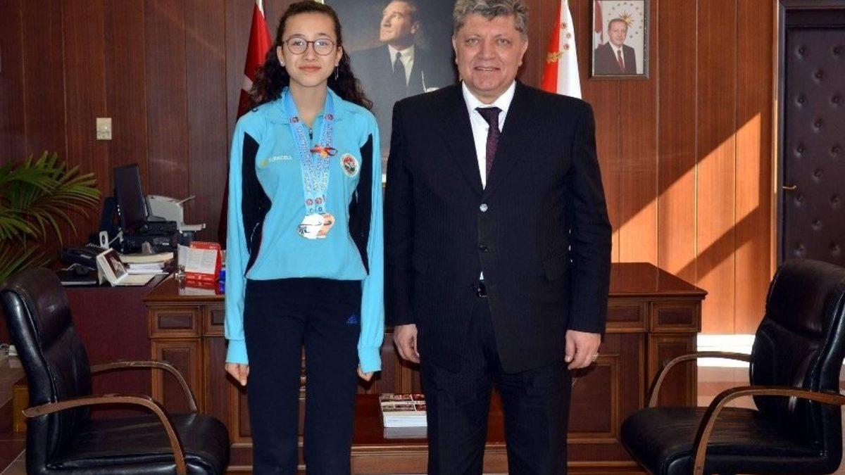 Aydın İl Emniyet Müdürü Dr. Rahmi Baştuğ, Şube Müdürü Hakan Hilmi Yaman’ın Türkiye şampiyonu olan kızını ödüllendirdi.Aydın İl Emniyet Müdürü Dr. Rahmi Baştuğ, Atletizm U16 Salon Türkiye Şampiyonasında 200 metrede Türkiye 3.’sü ve 4x200 metrede Türkiye Şampiyonu olan İl Emniyet Müdürlüğü Şube Müdürü Hakan Hilmi Yaman’ın kızı Ebru Yaman’ı ödüllendirildi. Baştuğ, Yaman’ın başarılarının devamı için Aydın Emniyet Müdürlüğü olarak her türlü desteği sunacaklarını belirtti.