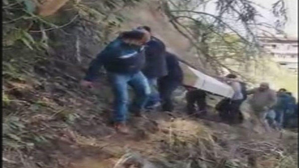 Rize’deki yol sorunu vicdanları rahatsız eden görüntülere neden oldu.Rize’nin Çayeli İlçesi Çukurluhoca Köyü’nde yol sorunu yüzünden Taşçı Ailesi cenazelerini ilkel yollarla sarp yamaçlardan bin bir zorlukla taşımak zorunda kaldı. Bir süredir sağlık problemleri bulunan Şaban Taşçı (68) geçtiğimiz gün hayatını kaybetti. Defin işlemleri için Taşçı’nın cenazesi mahallesine taşınmak istendi. Ancak mahallenin 500 metrelik kısmında yol bulunmadığı için tabut halatlarla bir kalasa bağlanarak, sarp yamaçlardan bin bir zorlukla taşındı. Ortaya çıkar görüntü vicdanları rahatsız etti. Acılı aile yaşadıkları yol mağduriyetini gösterebilmek için yakınlarının en son ve en zor yolculuğunu cep telefonu ile kayıt altına aldılar. Taşçı ailesinin yaşadığı mahalleye arazi anlaşmazlığı yüzünden yaklaşık 10 yıldır yol alınamadığı öğrenildi.