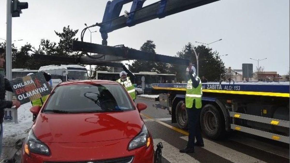 3 Aralık Dünya Engelliler Günü kapsamında araçlarını engelli rampaları önünde park eden araçlar çekici ile çekildi.Aile ve Sosyal Politikalar İl Müdürlüğü ile Erzurum Büyükşehir Belediyesi’nin ortaklaşa yürüttüğü proje kapsamında Cumhuriyet Caddesi’nde engelli rampası önüne araç park eden sürücünün aracı Erzurum Büyükşehir Belediyesi zabıta ekiplerince çekildi.Aile ve Sosyal Politikalar il Müdürlüğü Aziziye Sosyal Hizmet Merkezi Müdürü Mustafa Kılıç ve Erzurum Büyükşehir Belediye Başkan Vekili Eyüp Tavlaşpoğlu’nun katıldığı proje uygulaması engelli vatandaşlardan tam not aldı.Kılıç, kurumlarının engellilerle ilgili önemli çalışmaları olduğunu belirterek, engelli erişebilirliği kapsamında engellilere ayrılan rampaların engellileri mağdur etmeyecek şekilde kullanılması konusunda sürücülerin duyarlı olmasını istedi.ENGELLİLER 153’Ü ARAYABİLİRErzurum Büyükşehir Belediyesi Başkan Vekili Tavlaşoğlu da, 3 Aralık Dünya Engelliler Günü kutlayarak, belediye olarak engellilere yönelik önemli hizmetleri olduğunu ifade etti.Erzurum Büyükşehir Belediyesi Zabıta Komseri Ümit Cengiz ise engelliler konusunda farkındalık oluşturmak amacıyla Aile ve Sosyal Politikalar İl Müdürlüğü ile birlikte yapılan bu gibi çalışmalarının engellilere pozitif ayrımcılık sunduğunu ifade etti.Büyükşehir Belediye Başkanı Mehmet Sekmen’in konuyla ilgili çalışmalara önem verdiğini anımsatan Cengiz, ‘’Engelli vatandaşlarımız bu gibi mağduriyetlerde Alo 153 zabıta hattına başvurabilir. Başkanımız Sayın Mehmet Sekmen, engelliler konusunda çok duyarlı, bu yönde pozitif ayrımcılık oluşturan çalışmalara imza atıyoruz’’dedi.Rampadan geçerken mağdur olan engelli vatandaş Nurullah Ağakurt da, duyarsız sürücüler yüzünden engelli rampalarını kullanamadıklarını belirterek, Aile ve Sosyal Politikalar İl Müdürlüğü ve Erzurum Büyükşehir Belediyesi’ne teşekkür etti.