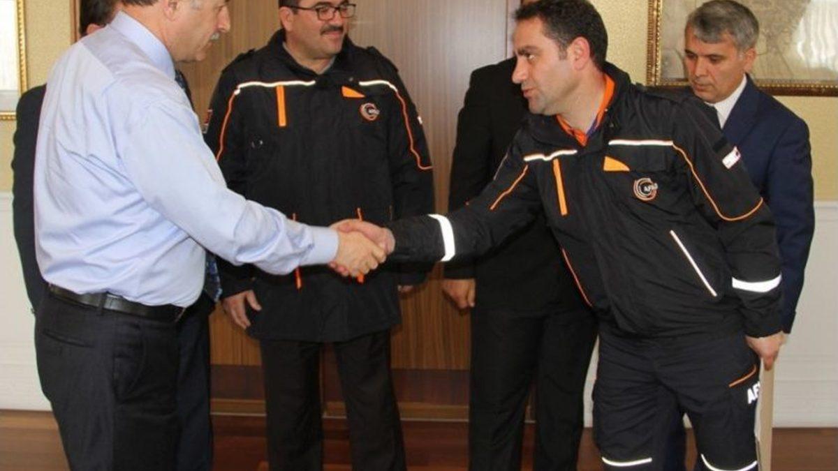 Erzurum Valisi Seyfettin Azizoğlu “Deprem Haftası” etkinlikleri çerçevesinde Erzurum’da düzenlenen resim yarışmasında dereceye giren öğrencileri kabul etti.Erzurum’da “1-7 Mart Deprem Haftası” etkinlikleri çerçevesinde resim yarışması düzenlendi. Dede Korkut İşitme Engelliler Okulu’nun katıldığı yarışmada yaptıkları birbirinden güzel resimlerle Sıla Enveroğlu birinci, Seyhan Kaya ikinci, Fatmatül Zehra Eğilmez üçüncü oldu.Başarılı olan Dede Korkut İşitme Engelliler Okulu’nun öğrenci, öğretmen ve idareci ile AFAD yetkililerini kabul eden Erzurum Valisi Seyfettin Azizoğlu resimleri tek tek inceleyerek, öğretmenlerinin işaret dili ile yardımcı olduğu öğrencilerden resimleriyle ilgili bilgi aldı.Erzurum Valisi Seyfettin Azizoğlu “Depremle yaşamak bizim bir gerçeğimiz. Depremi en az zararla atlatmak için deprem öncesi deprem sırası ve deprem sonrasında alınacak tedbirleri zihinlerimize yerleştirmemiz gerekli” dedi.Depremden korunmanın en önemli yolunun binaların sağlam zeminler üzerinde tüm kural ve kaidelerin uygulanarak sağlam bir şekilde yapılmasından geçtiğini ifade eden Vali Azizoğlu “Ülkemiz deprem kuşağında bir ülke olmakla birlikte Erzurum’da önemli deprem kuşaklarının bulunduğu bölgede yer alan bir ilimiz. Depremleri engelleyemeyeceğimiz için deprem öncesi, deprem sırası ve deprem sonrası yapılacaklar ile ilgili gerekli bilgi ve birikimleri zihinlerimizde biriktirmemiz gerekli. Depremle yaşamak bizim bir gerçeğimiz. Okullarda ilgili uzmanlar tarafından verilecek eğitimlerle alınacak tedbirler konusunu çocuklarımızın zihnine yerleştirmemiz gerekli” diye konuştu.AFAD Erzurum İl Müdürü Selahattin Karslı da Milli Eğitim Müdürlüğü ile ortak bir çalışma başlatacaklarını belirterek, “İlk etapta pansiyon olan yatılı okullarda, okul bahçesinde uygun görülecek bir yere tüm ekipmanları ile tam donanımlı bir konteyner koymayı düşünüyoruz. Okulda düzenleyeceğimiz ilk yardım müdahale eğitimleriyle burada bulunduracağımız ekipmanlarla AFAD yetkililerinin müdahalesi öncesinde kurs alan kişilerin ilk müdahaleyi yapmalarını sağlayacağız” ifadelerini kullandı.Ziyaret sonunda öğrencileri tebrik eden Erzurum Valisi Seyfettin Azizoğlu öğrencilere çeşitli hediyeler verdi.Vali Azizoğlu’nun çocukları kabulüne, AFAD Erzurum İl Müdürü Selahattin Karslı, İl Milli Eğitim Müdürü Ercan Yıldız. İl Acil Durum Arama ve Kurtarma Müdürü Mehmet Rıza Andiç, Palandöken İlçe Milli Eğitim Müdürü Abdurrahman Gazioğlu, Dede Korkut İşitme Engelliler Okulu Müdürü Mustafa Yılmaz, Müdürü Yardımcıları Abdulgani Yiğit ve Levent Ateştenyılmaz katıldı.