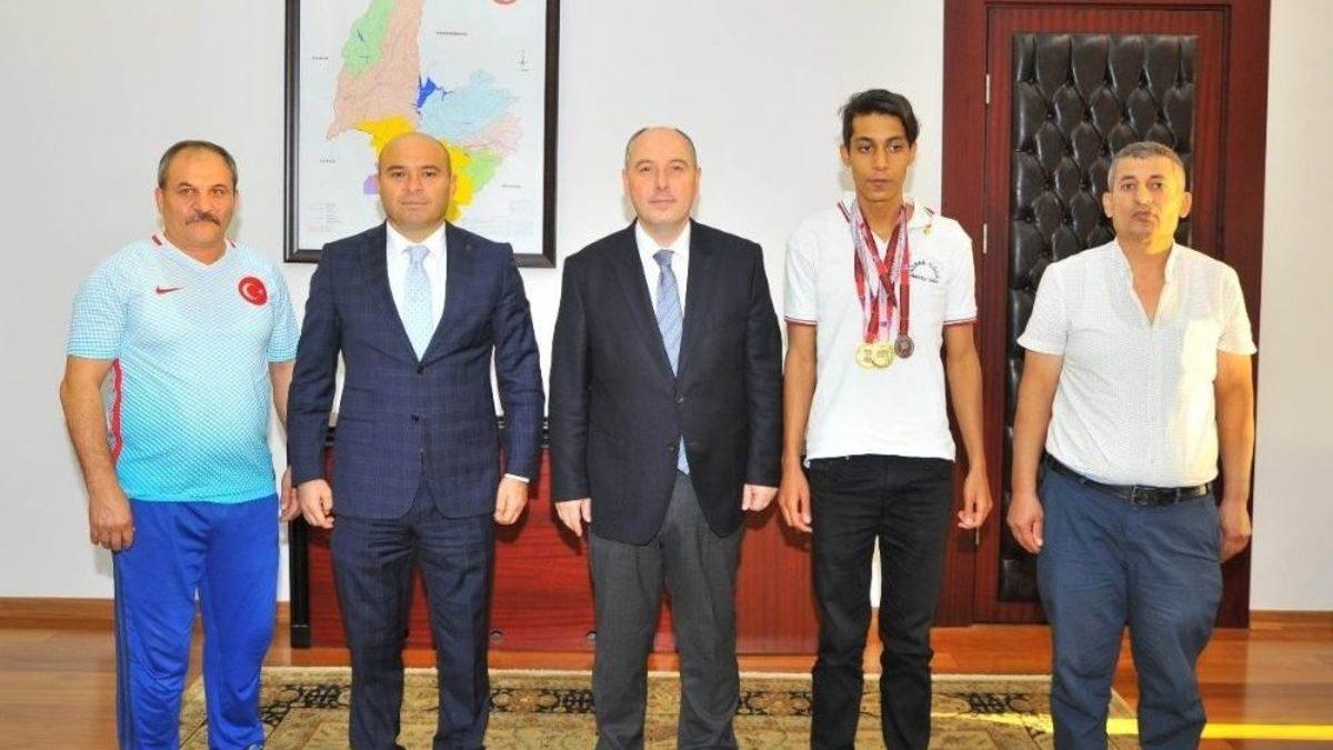 Osmaniye Valisi Ömer Faruk Coşkun, Türkiye Görme Engelliler Yüzme Şampiyonası’nda 4 madalya kazanan engelli sporcu Ercan Temur’u makamında kabul ederek, ödüllendirdi.Ziyaret sırasında sporcuya Gençlik Hizmetleri ve Spor İl Müdürü Ökkeş Demir, sporcunun babası ve antrenörü de eşlik etti.İl Müdürü Demir, Vali Coşkun’a verdiği bilgilerde, Trabzon’da terör saldırısında şehit düşen 15 yaşındaki Eren Bülbül’ün adının verildiği Türkiye Görme Engelliler Yüzme Şampiyonası’nın 31 Ekim-2 Kasım tarihleri arasında Trabzon’da düzenlendiğini ve Ercan Temur’un 100 metre sırtüstü, 100 metre serbest ve 400 metre serbest müsabakalarında Türkiye şampiyonluğu ve 50 metre serbest müsabakasında ise Türkiye ikinciliği derecelerini elde ettiğini söyledi.Ercan Temur’u kutlayarak başarılarının devamını dileyen Vali Ömer Faruk Coşkun ise sporcuyu çeyrek altınla ödüllendirdi.Vali Coşkun, Osmaniye’ye 4 madalya ile dönen sporcunun gurur verdiğini ifade ederek, sporcuya gelecekte de yeni başarılara imza atacağına inandığını söyledi.