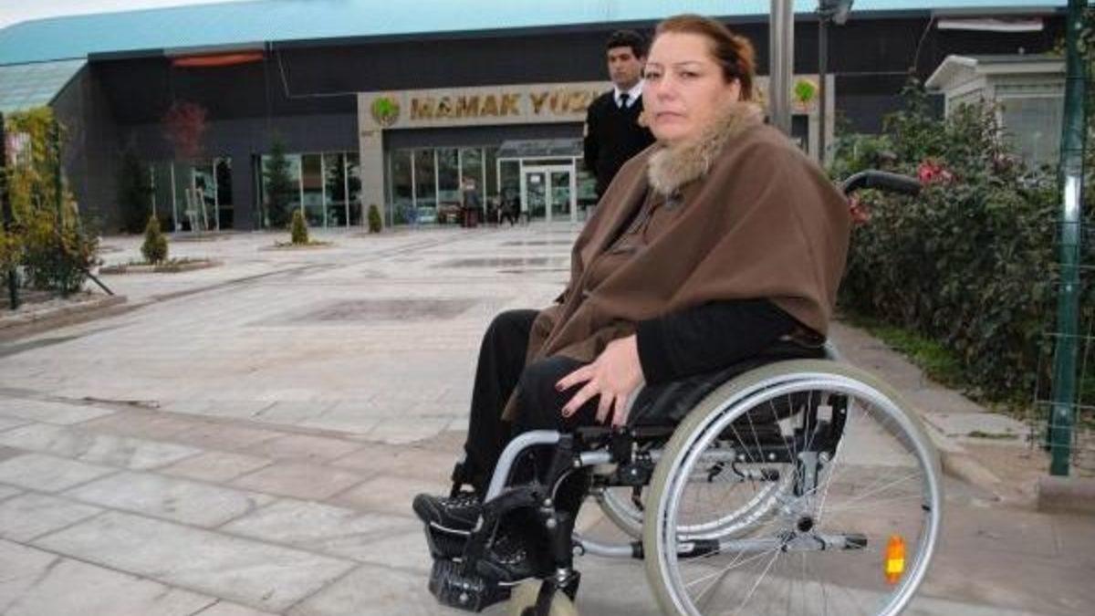Hüseyin ÖZBALI / ANKARA, (DHA)-ANKARA'nın Mamak İlçesi Akdare Mahallesi'nde yaşlı annesi ile birlikte kalan doğuştan yürüme engelli 37 yaşındaki Vahide Çakır, sağlığına kavuşabilme umuduyla yüzme ezgersizi için gittiği yüzme havuzunda engelli sandalyesinin kırılması sonucu hastanelik oldu. Kolundan, ayaklarından ve belinden yaralanan engelli Çakır, 112 Acil Servis ambulansı ile kaldırıldığı hastanede tedavi gördü. Durumu havuz yöneticilerine bildirdiğini belirten Çakır, "Size buranın uygun olmadığını düşünüyoruz. Havuzumuzu beğenmiyorsanız artık gelmeyin" cevabı karşısında şok olduğunu söyledi.