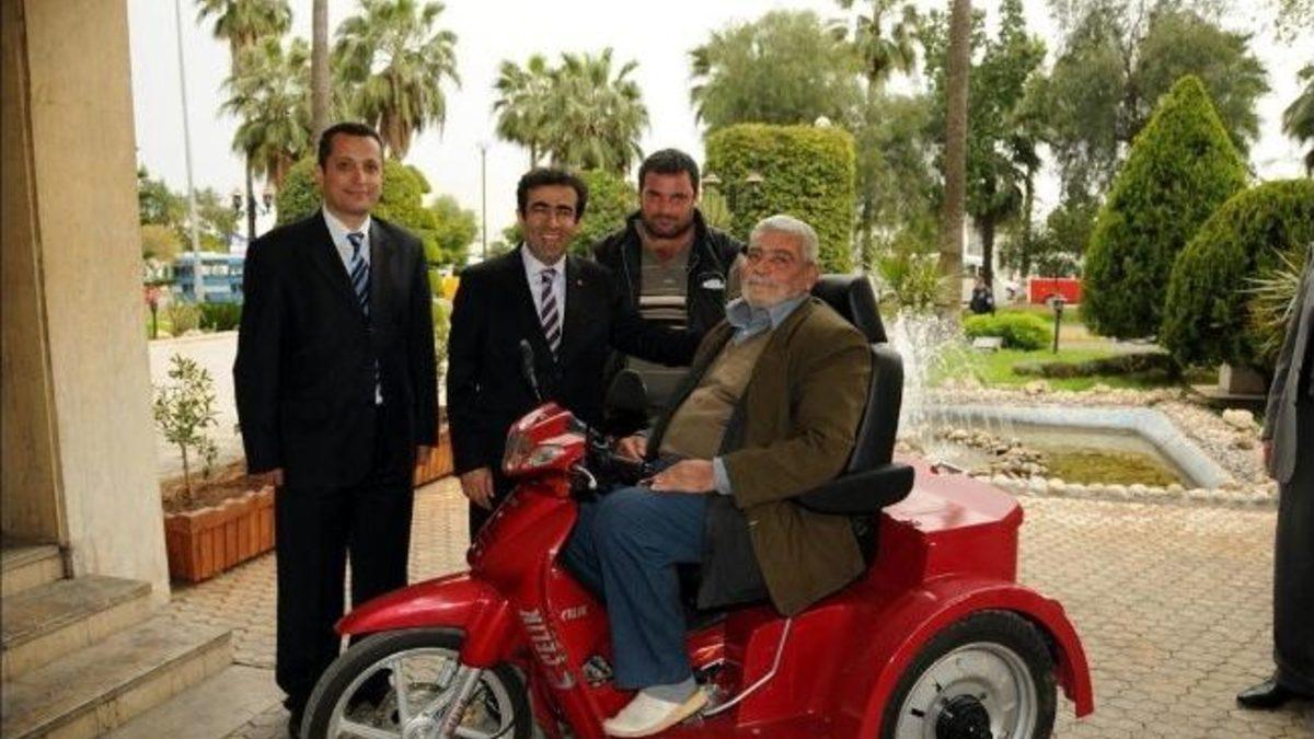 Mersin Valisi Hasan Basri Güzeloğlu, engelli Fahrettin Genç’e, maliyeti İl Sosyal Yardımlaşma ve Dayanışma Vakfı tarafından karşılanan özel tertibatlı motosikletin anahtarını teslim etti.