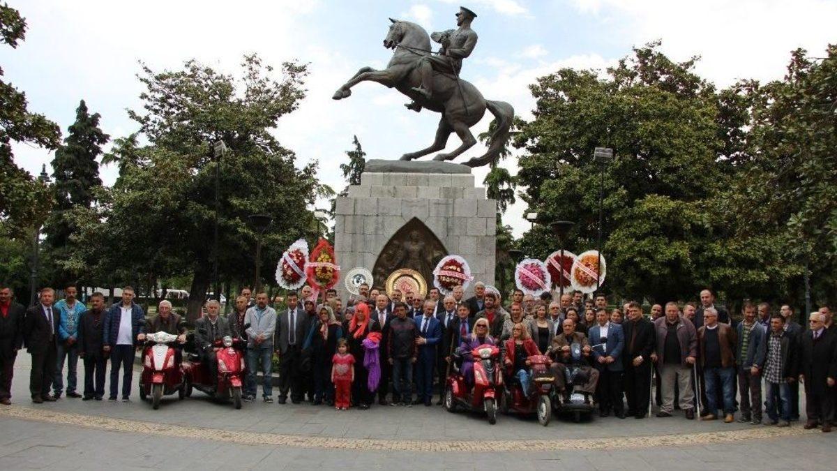 Samsun’da 10-16 Mayıs Engelliler Haftası nedeniyle Atatürk Anıtı’na çelenk sunuldu.Anıtpark Atatürk Anıtı önünde düzenlenen etkinlik; Aile ve Sosyal Politikalar İl Müdürlüğü, Karadeniz Engelliler Federasyonu, Türkiye Sakatlar Derneği (TSD) Samsun Şube Başkanlığı, Samsun Engelli Kadınlar Derneği, 6 Nokta Körler Derneği Samsun Şubesi, Medikal Park Samsun Engelli Gücü, Gençlik ve Spor Kulübü, Bedensel Engelliler Spor Kulübü ve Körler Eğitim ve Kalkındırma Derneği ve Anadolu Sakatlar Derneği’nın anıta çelenk sunumuyla başladı. Daha sonra saygı duruşunda bulunuldu ve İstiklal Marşı okundu.“İş bulmakta oldukça zorlanıyoruz"Etkinlikte bir konuşma yapan ve konuşması işaret diliyle çevrilen işitme engelli Samet Fildişi, engellilerin yaşadığı sorunlara değindi. Fildişi yaptığı konuşmada, “En büyük sorunlarımızdan biri engellilerin istihdamı. Toplumun dezavantajlı kesimi olarak iş bulmakta oldukça zorlanıyoruz. Engel durumumuz göz önüne alınarak istihdam kapılarının açılması öncelikli dileğimizdir. Tüm engelli vatandaşlarımız adına gelecek günlerde toplumsal sorunlarımızın giderilmesi yönünde adımlar atılmasını umuyorum" dedi."10 bin 27 kişiye evde bakım ücreti ödeniyor"2017 Mayıs itibariyle kişi başı 960 TL olarak 10 bin 27 kişiye evde bakım ücreti ödendiğini belirten Aile Sosyal Politikalar Samsun İl Müdür Vekili Tekin Balcı, "Bunun dışında 9 bin 875 engelliye engelli kimlik kartı verilmiştir. Resmi-özel bakım ve rehabilitasyon merkezlerimiz aracılığıyla yatılı olarak 719 engellimizin bakımı gerçekleştirilmektedir. Engellilerimizin engelsiz yaşayabileceği ’umut evleri’ projesi ilimizde hayata geçirilmiştir. Bu kapsamda Havza’da 3 adet ’umut evi’ açılmıştır" diye konuştu.Program Atatürk Anıtı önünde çektirilen hatıra fotoğrafıyla sona erdi.