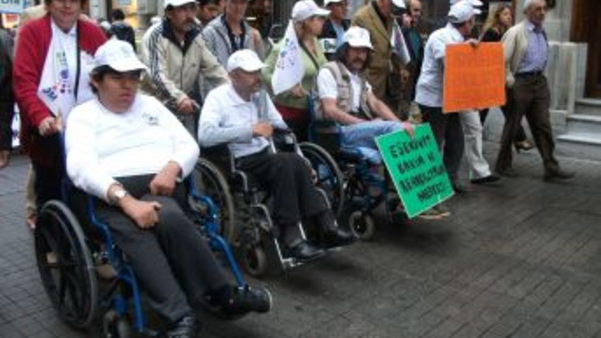 Grubun önünde yer alan tekerlekli sandalyeli engelliler, İstiklal Caddesi’nde ilerlemekte oldukça güçlük çekti. Yoldaki çukurlardan geçmekte zorlanan tekerlekli sandalyelilere yakınları yardımcı oldu. Engellilerin farkındalığını artırmak için yapılan yürüyüşte engelli vatandaşlar, Türkiye’nin en ünlü caddesinin engellerini aşmakta zorlandı.