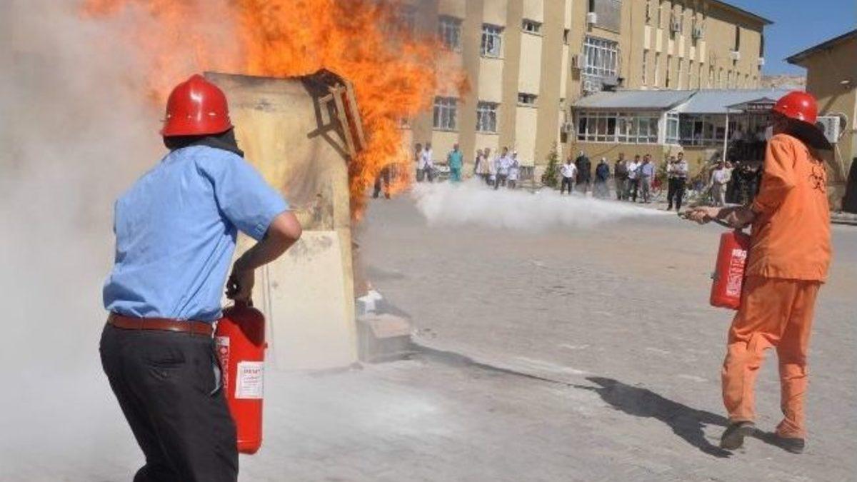 Van’ın Erciş Devlet Hastanesi’nde gerçeği aratmayan bir yangın tatbikatı gerçekleştirildi.Vanyolu Mahallesi'nde bulunan Erciş Devlet Hastanesi bahçesinde, hastane personeli, belediye İtfaiyesi, İlçe emniyet müdürlüğü ile 112 ekiplerinin katılımı ile düzenlenen tatbikat gerçeği aratmadı. Tatbikattan haberi olmayan bazı vatandaşlar ise olanları merakla izledi. Yangın esnasında yaralıların kurtarılması, ilk müdahalenin yapılması ve çevre güvenliği gibi olaylar ekipler tarafından sırasıyla canlandırıldı.Yangın tatbikatı ile ilgili olarak gazetecilere açıklamalarda bulunan Erciş Devlet Hastanesi Baştabip Yardımcısı Kardiyolog Mesut Kitmez, tatbikattın hastane personeli, belediye İtfaiyesi, İlçe emniyet müdürlüğü ile 112 ekiplerinin katılımı ile gerçekleştirildiğini belirterek, “Bugün hastanemizde bir yangın tatbikatı yaptık. Senaryo gereği Dahiyle servisimizde yangın çıkmıştır. Hastanemizin bütün personeli bu konu ile ilgili görevlendirilmiş ekipler, tatbikat gereği görevlerini yerine getirmiştir. Hastalar Dahiyle servisinden kurtarılarak 112 araçlarıyla en yakın sağlık kuruluşlarında tedavi görecekleri merkezlere ulaştırılmıştır. Tatbikatta herhangi bir sıkıntımız olmamıştır. Bu vesile ile ufak tefek birkaç eksikliğimizi de görmüş olduk. Bir dahaki gerçek yangınlara, diğer afetlere daha hazırlıklı olmak için bugünkü tatbikatımız başarılı olmuştur. Emeği geçenlere teşekkür ediyorum” dedi.