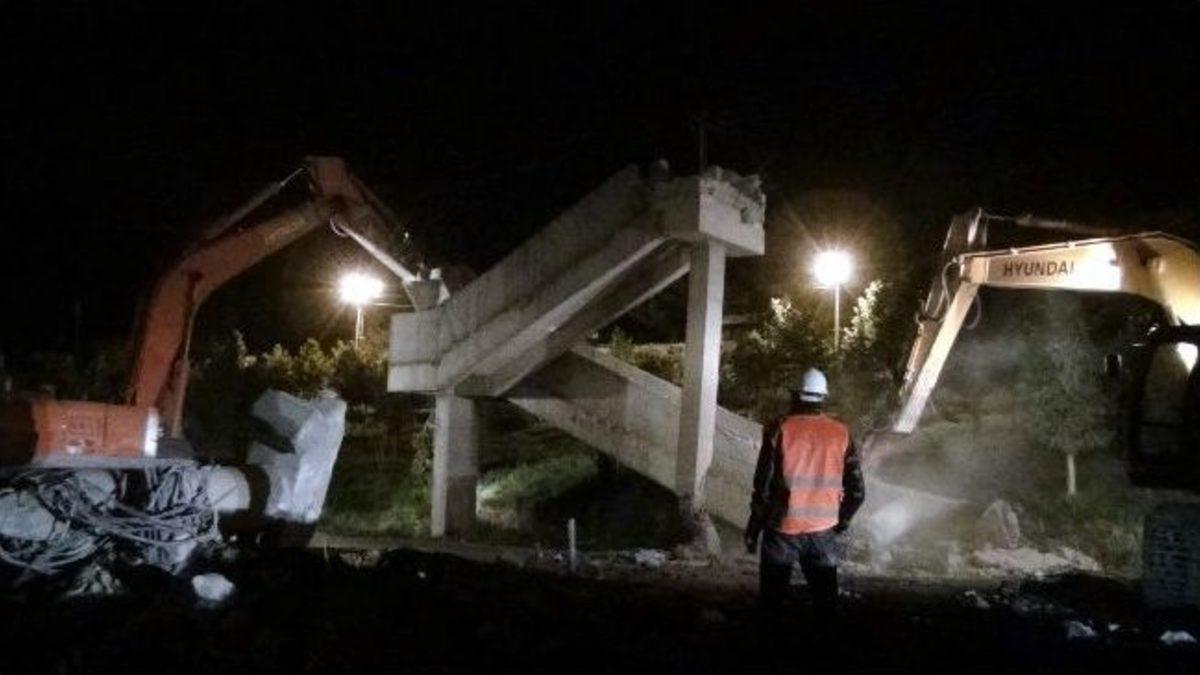 Van’ın Erciş ilçesinde, karayolunda yapım ve genişletme çalışmaları nedeniyle üst geçit yıkımı gerçekleştirildi.Erciş-Ağrı karayolundaki yol yapım ve genişletme çalışmaları nedeniyle zemin altında kalan 50 metre uzunluğundaki üst geçit, iş makinelerinin marifetiyle iki saat içerisinde yıkıldı. Yapım çalışmalarını yapan yüklenici firma görevlileri ile Erciş İlçe Trafik Şube Müdürlüğü ekiplerinin karayolunda gerekli güvenlik tedbirlerini almasının ardından yıkıma geçildi. Önce üst geçidin ayaklarını kırıcı iş makinesiyle kesen görevliler, daha sonra büyük beton parçasını yere düşürdü. İki saat süren çalışmalar sırasında araç trafiği ise Ebubekir Çiftci Parkı içerisinden dönüşümlü olarak sağlandı. Yıkım çalışmalarının sona ermesinin ardından karayolu moloz parçalarından temizlenerek yeniden trafiğe açıldı.