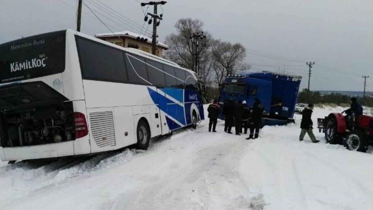 Balıkesir’in Bandırma ve Erdek ilçelerinde kar ulaşımı aksatıyor.Bandırma’dan Bursa ve Çanakkale güzergahlarına gidişlerde yollarda ulaşım sağlanmaya devam ederken, şehirlerarası otobüs ve VIP araçlar da bu yönlere olan seferlerine başladı. Erdek-Bandırma arasında ulaşım kontrollü olarak devam ederken, Erdek-Düzler arasında ise kayarak yolu kapatan TIR sebebiyle ulaşım durdu. Balıkesir Büyükşehir Belediyesi Erdek İtfaiye Amirliği ekipleri, kayan ve makas kilitleyen TIR’ı yoldan kaldırarak yolu trafiğe açmaya çalışıyor.