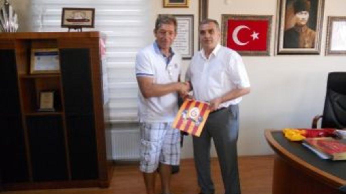 Galatasaray alt yapı kaleci antrenörü Senih Yaban'ın, Odabaş'a Galatasaray flaması armağan ettiği ziyarette, birlikte hatıra fotoğrafı çektirildi.