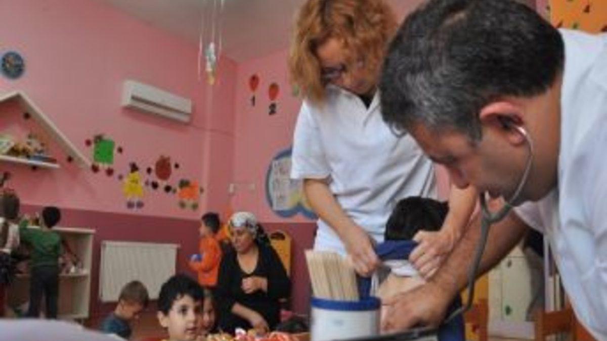Soğuk havanın etkisini göstermeye başladığı günlerde çocukların taşıyabileceği muhtemel enfeksiyonların olup olmadığının gözlemlendiği taramada, sağlıklarında sorun olduğu gözlenen çocuklara ilaç yazıldı.