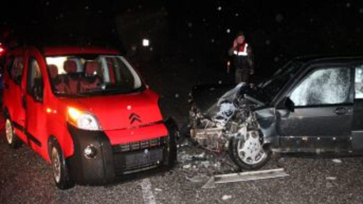 Alınan bilgilere göre, Ereğli-Zonguldak karayolunun Soğanlı Suyu rampalarında, Salih Çınar (49) idaresindeki 67 ED 959 plakalı otomobil, aynı istikamette seyrettiği sürücüsü belirlenemeyen 41 L 7749 plakalı otomobille sollama yaptığı sırada hafif çarptı. Çarpmanın etkisiyle sürücüsünün direksiyon hakimiyetini kaybettiği 67 ED 959 plakalı otomobil, karşı yönden gelen Muhammet Kılıç’ın (33) kullandığı 06 TDH 92 plakalı otomobille kafa kafaya çarpıştı.
