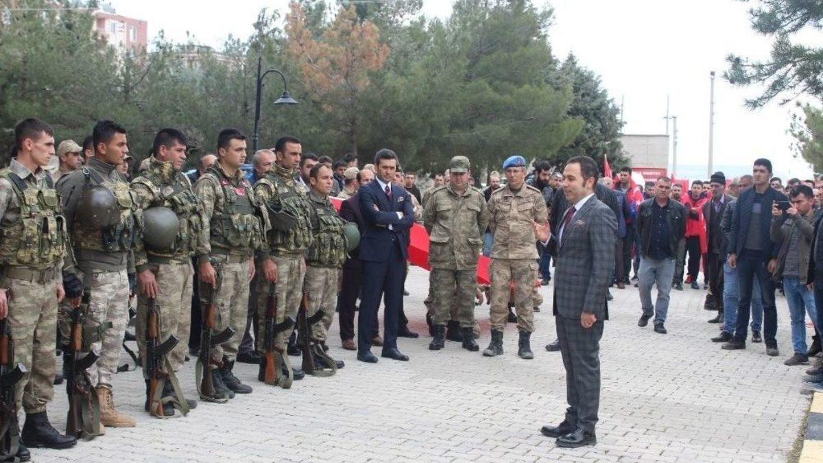 Diyarbakır’ın Ergani ilçesinde görev yapan 35 güvenlik korucusu “Zeytin Dalı Harekatı”na katılmak üzere Afrin’e uğurlandı.Ergani ilçesinde görevli 35 güvenlik korucusu Türk Silahlı Kuvvetlerinin (TSK) Suriye’nin Afrin bölgesinde yürüttüğü “Zeytin Dalı Harekatı”na katılmak için yola çıktı. Yolculuk öncesi güvenlik korucuları için İlçe Jandarma Komutanlığında bir uğurlama töreni düzenlendi. Törene Ergani Kaymakamı Mesut Çoban, Gençlik ve Spor ilçe Müdürü Kenan Taş, askeri erkan, Ergani Gençlik Merkezinde gönüllü olarak çalışan gençler ve korucuların yakınları katıldı. Törende kurban kesilirken güvenlik korucuları komando andı içti. Güvenlik korucuları daha sonra dualarla Afrin’e uğurlandı.