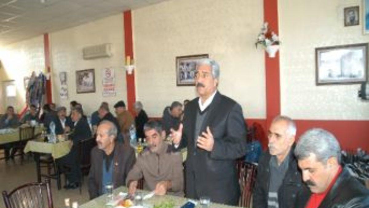 Diyarbakır'ın Ergani İlçesi Belediye Başkanı Fesih Yalçın, yeni yasa kapsamında belediyeye bağlanacak 88 köy muhtarlarıyla yemekli toplantıda bir araya geldi.