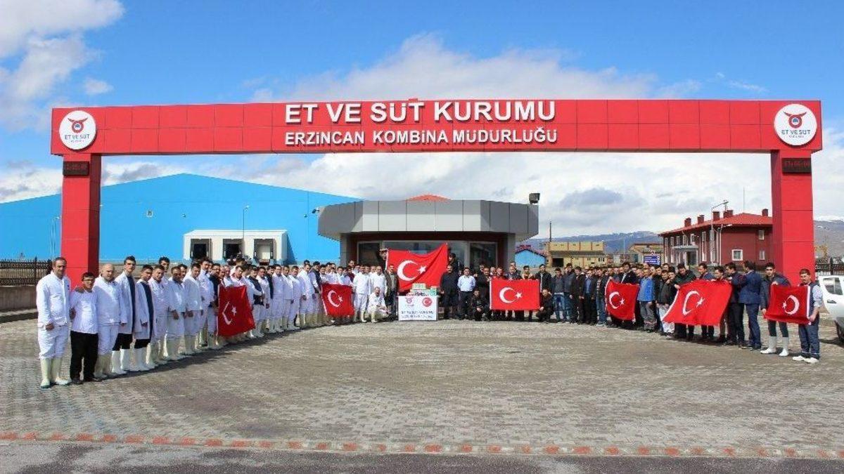 Et ve Süt Kurumu Erzincan Kombina Müdürlüğü çalışanları, Türk Silahlı Kuvvetleri tarafından Afrin’de yürütülen Zeytin Dalı Harekatın da görevli askerler ile birlikte olduklarını hissettirmek maksadıyla başlattıkları destek kampanyası kapsamında bu ay ki istihkak haklarını Zeytin Dalı Harekatında görevli askerlere gönderdiler.Kampanya kapsamında Et ve Süt Kurumu Erzincan Kombina Müdürlüğü çalışanı yaklaşık 200 personel içlerinde kişisel bakım malzemelerinin bulunduğu istihkaklarını Zeytin Dalı Harekatında görevli askerlere yolladılar.Kampanya ilişkin açıklamada bulunan Erzincan Kombina Müdürlüğü çalışanlarından Faruk Kocatürk, Erzincan Tavuk Kombinası çalışanları olarak başlatmış oldukları kampanya kapsamında bu ay ki istihkak haklarını Türk Silahlı Kuvvetlerimiz tarafından Afrin’de yürütülen Zeytin Dalı Harekatında görevli askerlere moral amaçlı gönderdiklerini söyledi.Et ve Süt Kurumu Erzincan Kombina Müdürlüğü önünde toplanan yaklaşık 200 çalışan Kuran-ı Kerim tilavetinin ardından tekbirler getirerek, istihkaklarını Afrin’e uğurladılar.