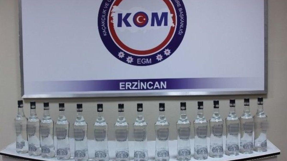 Erzincan’da 18 şişe kaçak içki ele geçirildi.Erzincan İl Emniyet Müdürlüğü, Kaçakçılık ve Organize Suçlarla Mücadele Şube Müdürlüğü görevlilerince yapılan çalışmalar kapsamında Erzurum - Erzincan Karayolu üzerinde şüphe üzerine durdurulan, sürücülüğünü Y.B. (39) isimli şahsın yaptığı ve içerisinde Ö.Ç. (41) isimli şahsın da bulunduğu 01 Plakalı araçta yapılan aramada; bagaj kısmında poşetler İçerisinde 18 şişe kaçak olduğu değerlendirilen alkollü içki (rakı) ele geçirildi.Yakalanan Y.D. ve Ö.Ç. isimli şahıslar hakkında "5607 Sayılı Kaçakçılıkla Mücadele Kanununa Muhalefet" suçundan yasal işlemler başlatıldığı belirtildi.