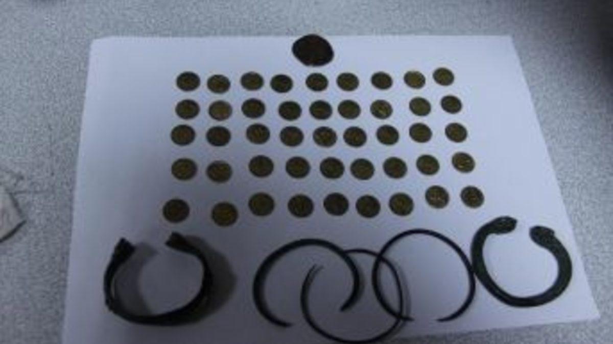 Erzincan'da polis tarafından durdurulan bir araçta yapılan aramada, sikke ve çift başlı yılan figürleri bulunan bakır bilezik ile çok sayıda tarihi eser ele geçirildi. Olayla ilgili gözaltına alınan M.R.T., İ.K. ve A.Y. hakkında “2863 sayılı Kültür ve Tabiat Varlıklarını Koruma Kanununa Muhalefet” suçundan KOM Şube Müdürlüğü tarafından yasal işlem yapıldı.Erzincan-Erzurum karayolu üzerinde yol uygulaması yapan Erzincan Emniyet Müdürlüğü, Kaçakçılık ve Organize Suçlarla Mücadele Şube Müdürlüğü (KOM) ekipleri, sürücülüğünü M.R.T.’nin yaptığı, içerisinde İ.K. ve A.Y.’nin bulunduğu bir aracı durdurdu. Araçta yapılan detaylı aramada ön kısmında bayan figür resmi olan ve Ferpav Dnzeno, arka kısmında haç işareti olan ve Conop ibaresi yazılı 45 adet sarı renkli sikke, bir adet bakır sikke, iki adet çift başlı yılan figürleri olan bakır bilezik ile 3 adet üzerinde herhangi bir ibare olmayan bakır bilezik olmak üzere toplam 51 parça tarihi eser ele geçirildi. Tarihi eserleri Ağrı’dan İzmir’e götürdükleri öğrenilen M.R.T., İ.K. ve A.Y. KOM ekipleri tarafından gözaltına alınırken, tarihi eserlerin tamamını araç içerisinde bulunan ayakkabıların içerisine gizleyen M.R.T. ifadesinde; mezarlık yanında kuyu kazarken tarihi eserleri bulduğunu ve satmaya götürdüğünü belirtti.Gözaltına alınan M.R.T., İ.K. ve A.Y. hakkında “2863 sayılı Kültür ve Tabiat Varlıklarını Koruma Kanununa Muhalefet” suçundan KOM Şube Müdürlüğü tarafından yasal işlem yapıldı.